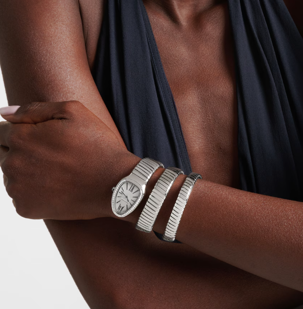 Bulgari Serpenti Tubogas 35mm Steel and Diamond Silver Dial Quartz Watch