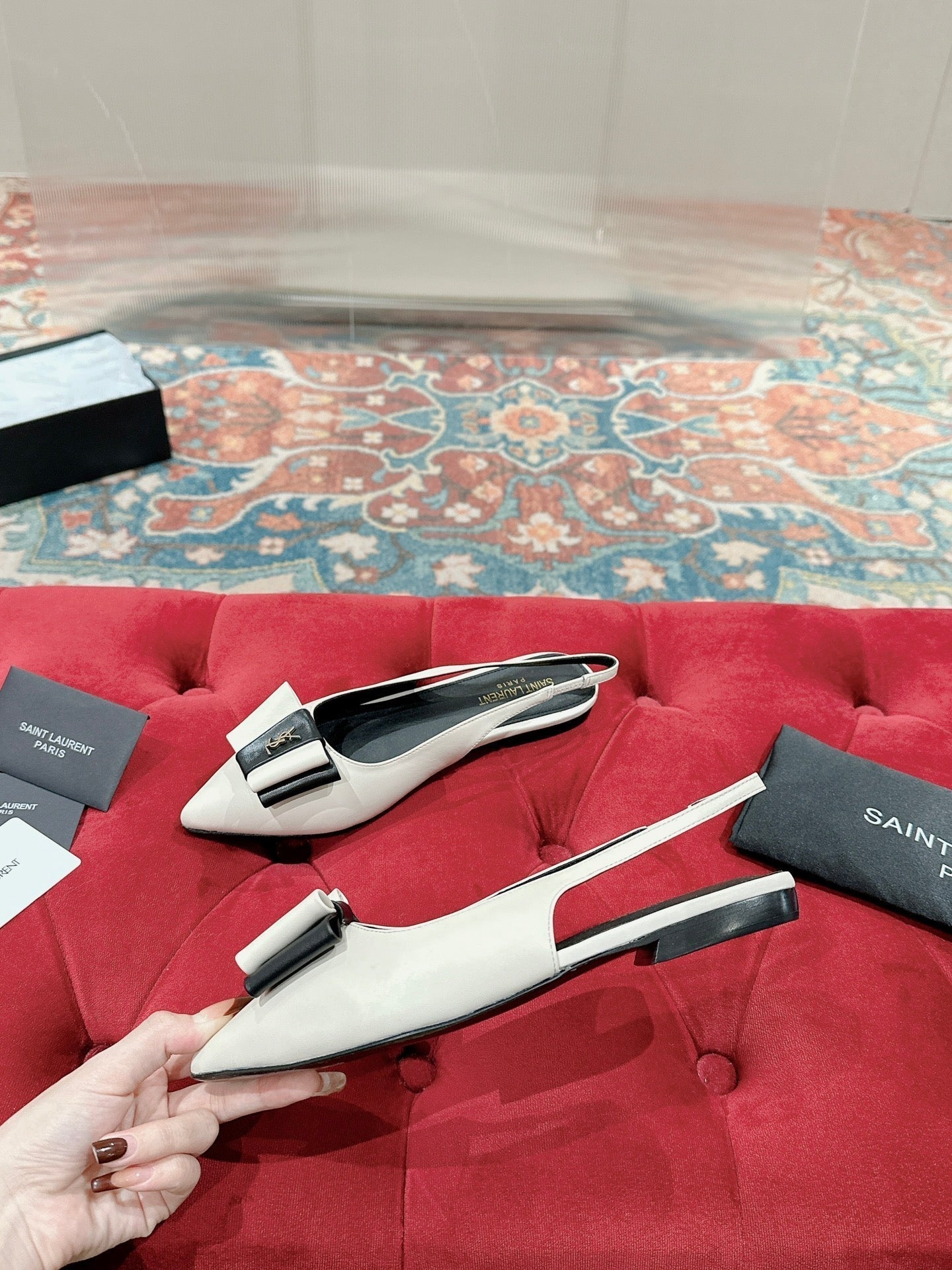 CASSANDRA SLINGBACK FLAT IN WHITE MIX BLACK SMOOTH LAMBSKIN