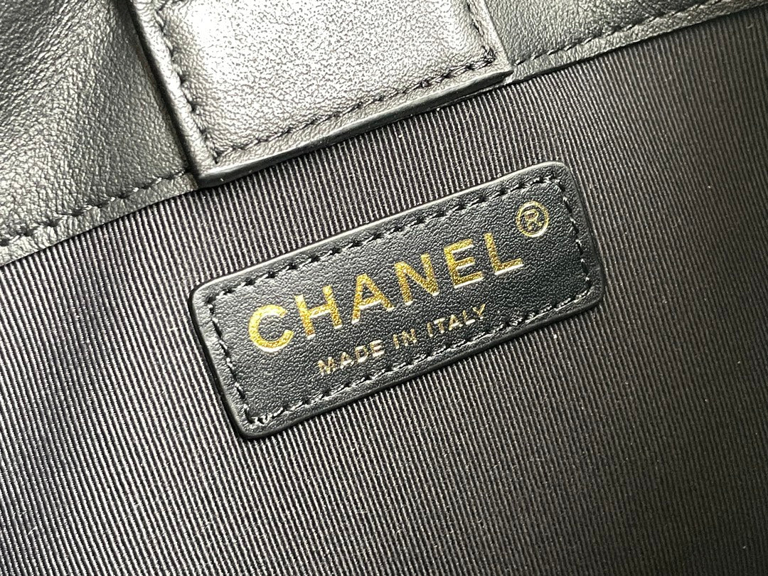 cc 24s 20cm hobo bag black calfskin gold hardware