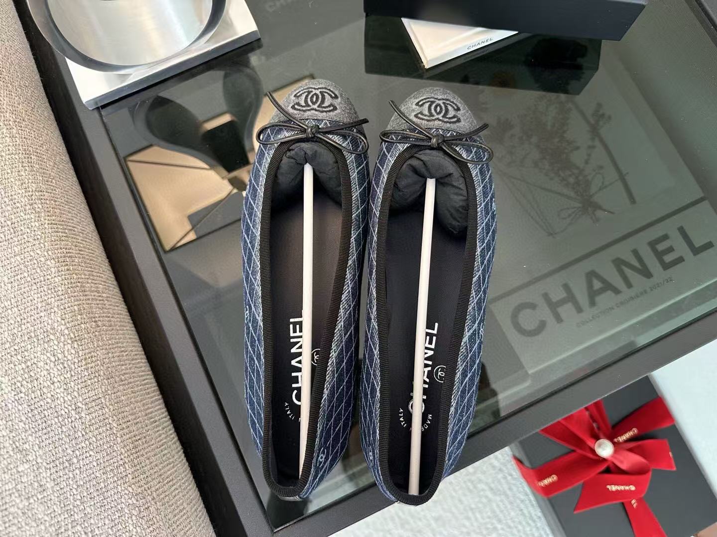 CC 25 Ballet Flat Dark Blue White Quilted Denim