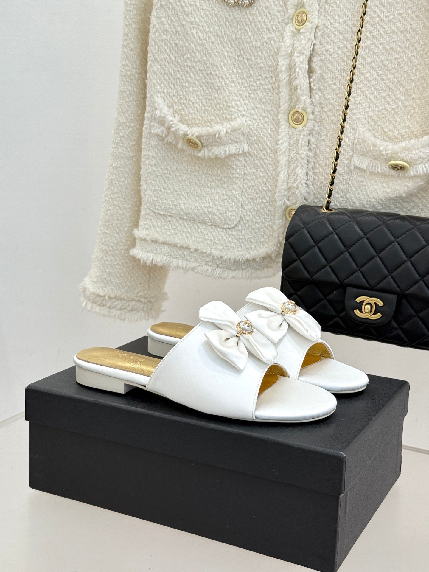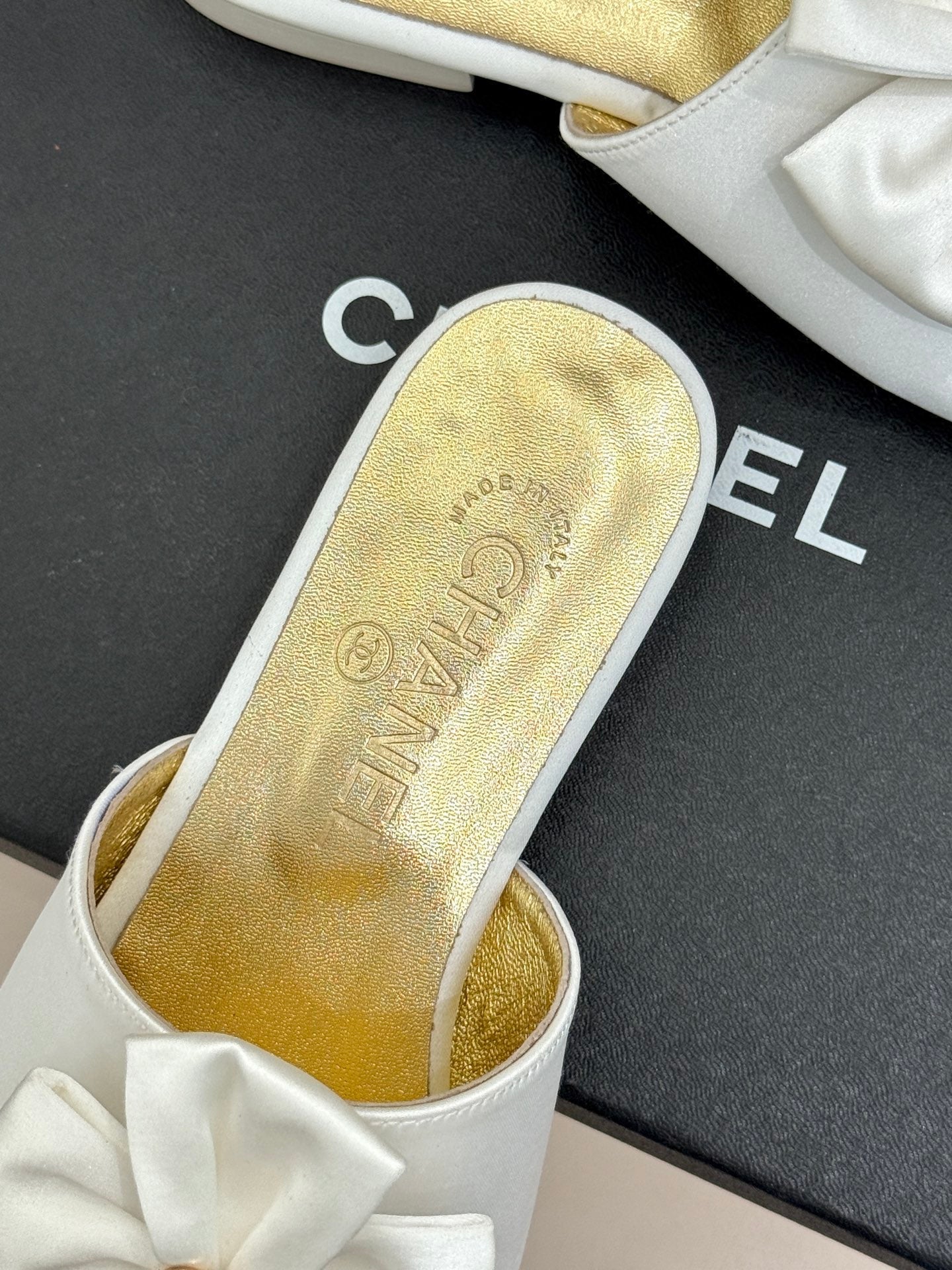 CC 26 Bow Flat Sandal White Gold Satin Sheepskin 609800
