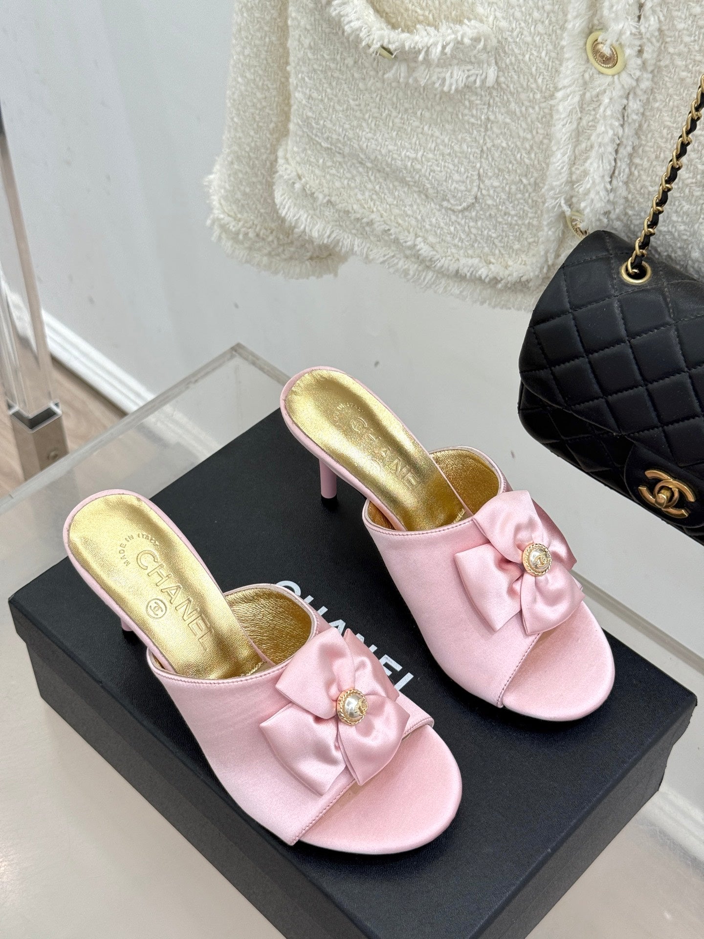 CC 26 Bow Sandal 85mm Pink Gold Satin Sheepskin 609808