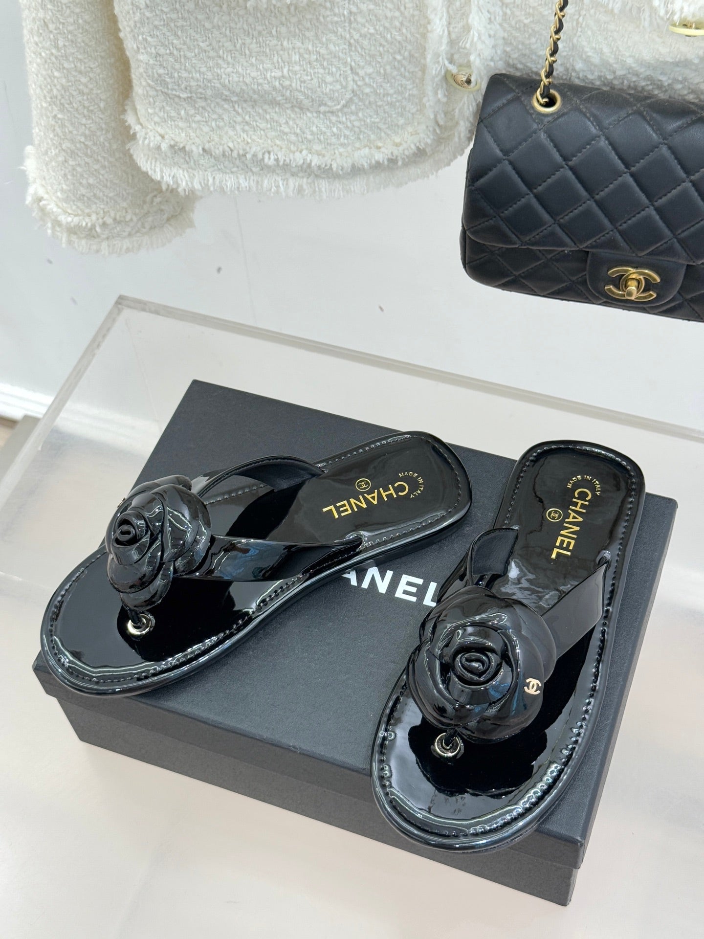 CC 26 Camellia Thong Sandal Black Patent Leather 609993
