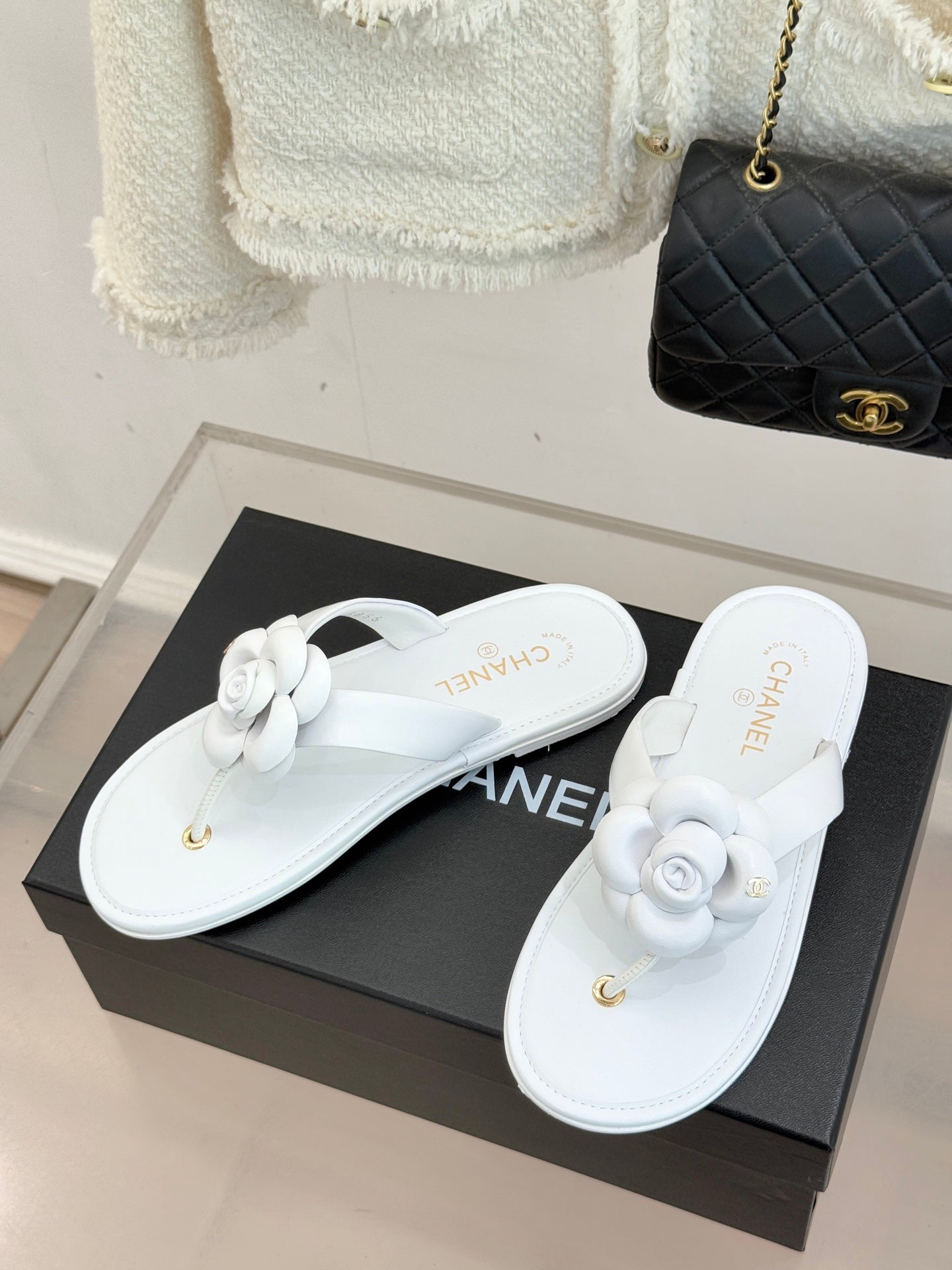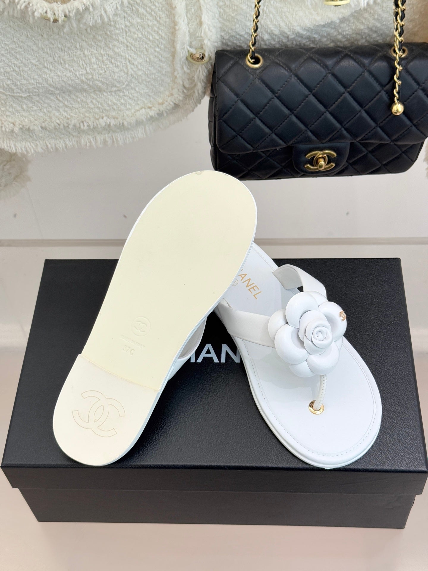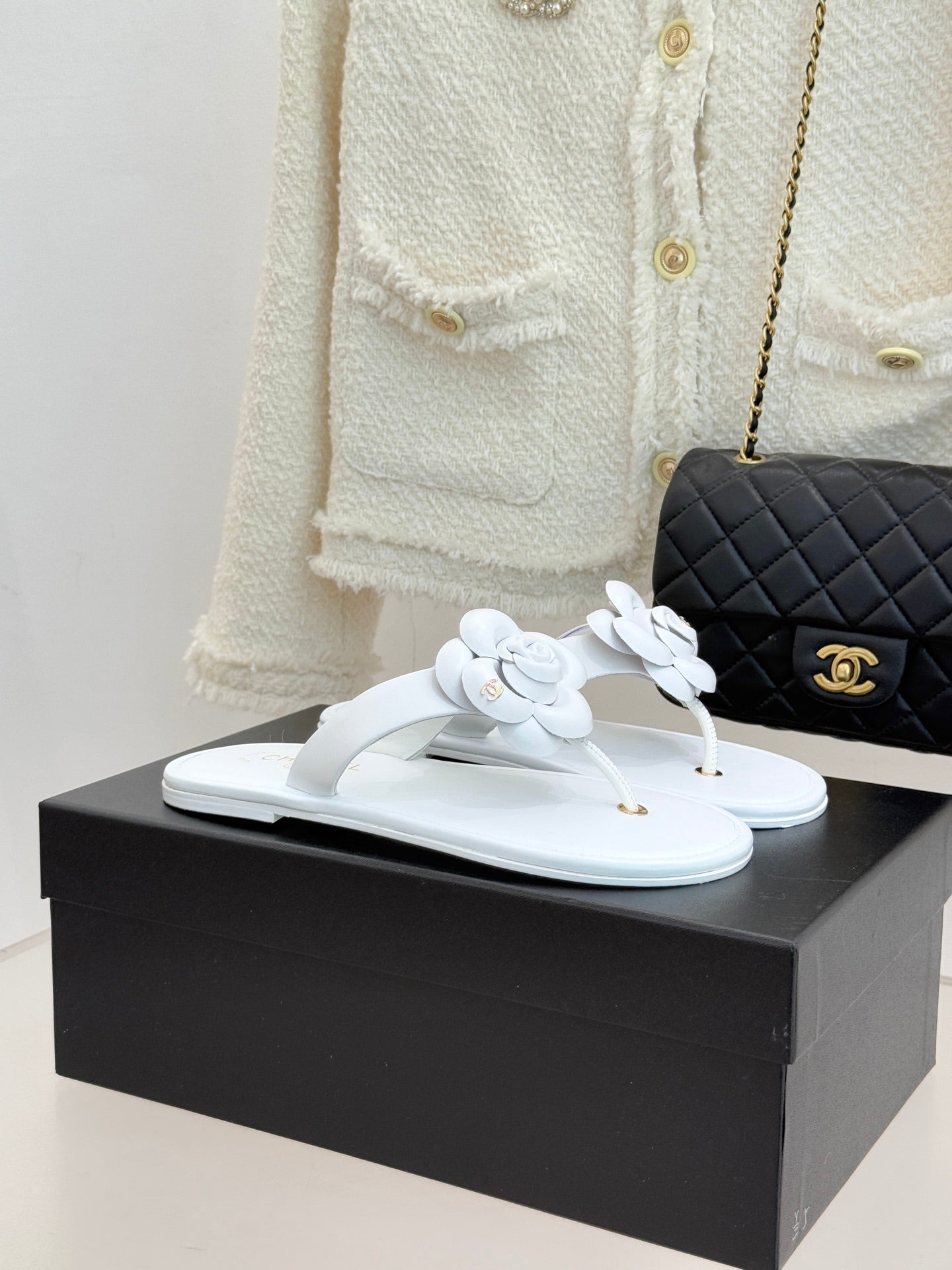 CC 26 Camellia Thong Sandal White Sheepskin 610002