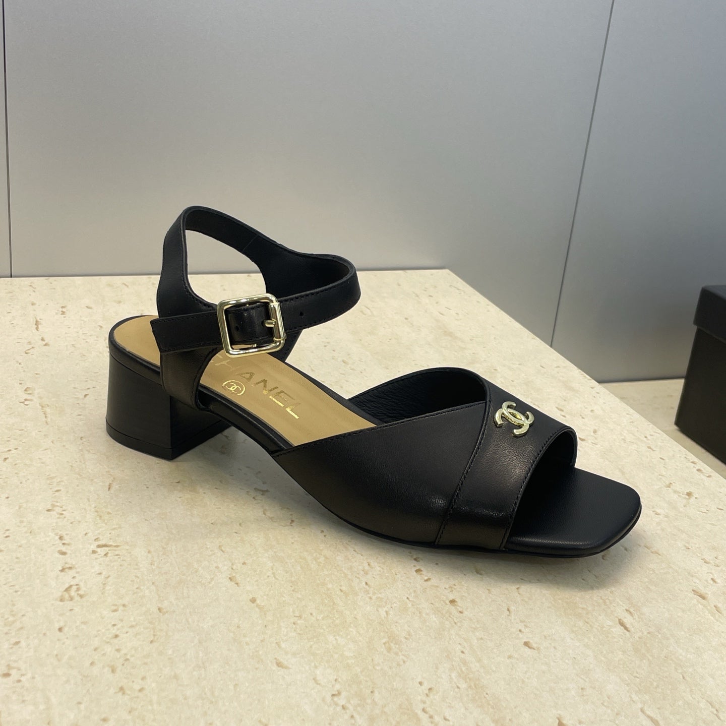 CC 26 Heeled Sandal 45mm Black Beige Sheepskin 607476