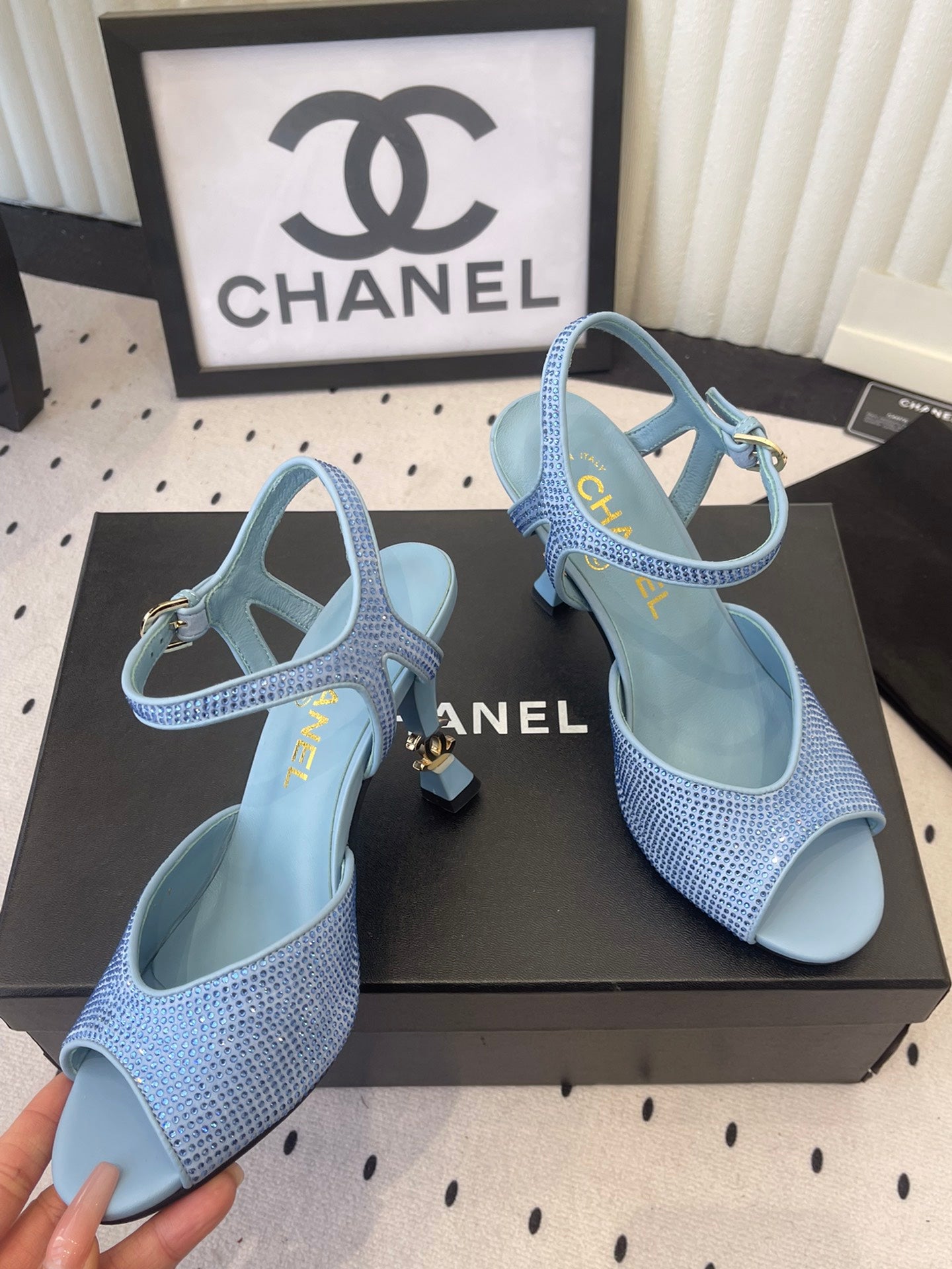 CC 26 Rhinestone Sandal 75mm Blue Lambskin 611732