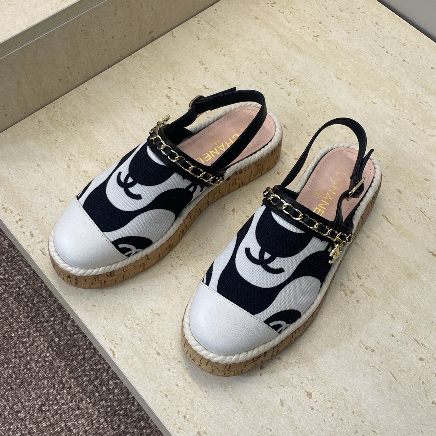 CC 26 Slingback Espadrilles White Sheepskin Canvas 607461
