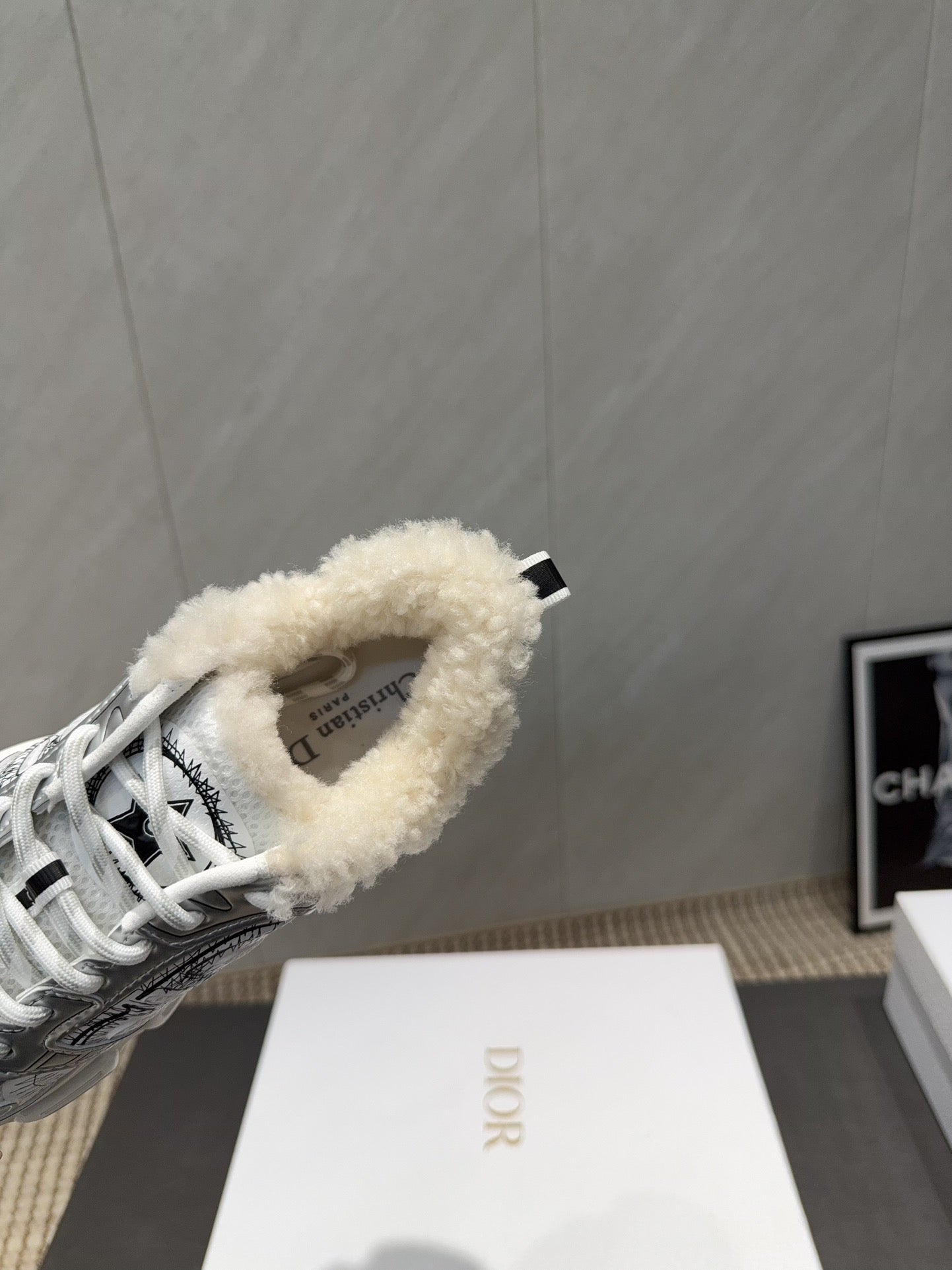 CD platform casual sneaker white sliver wool suede mesh 539676
