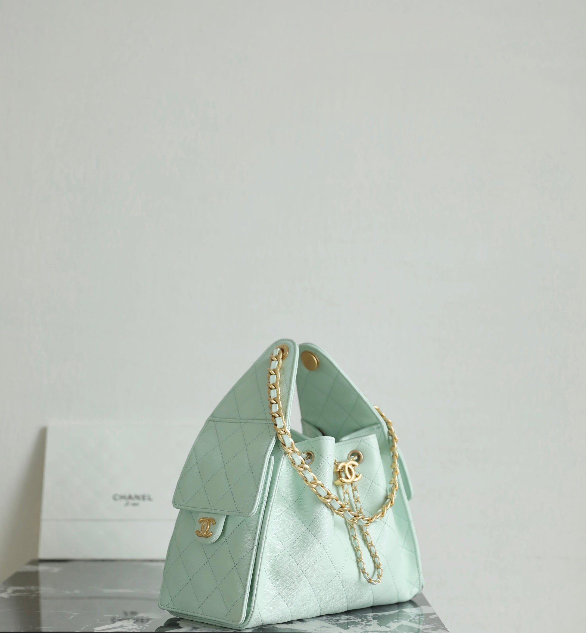 Chanel 2025 Hobo Bag 30cm Light Green Caviar Leather 338737