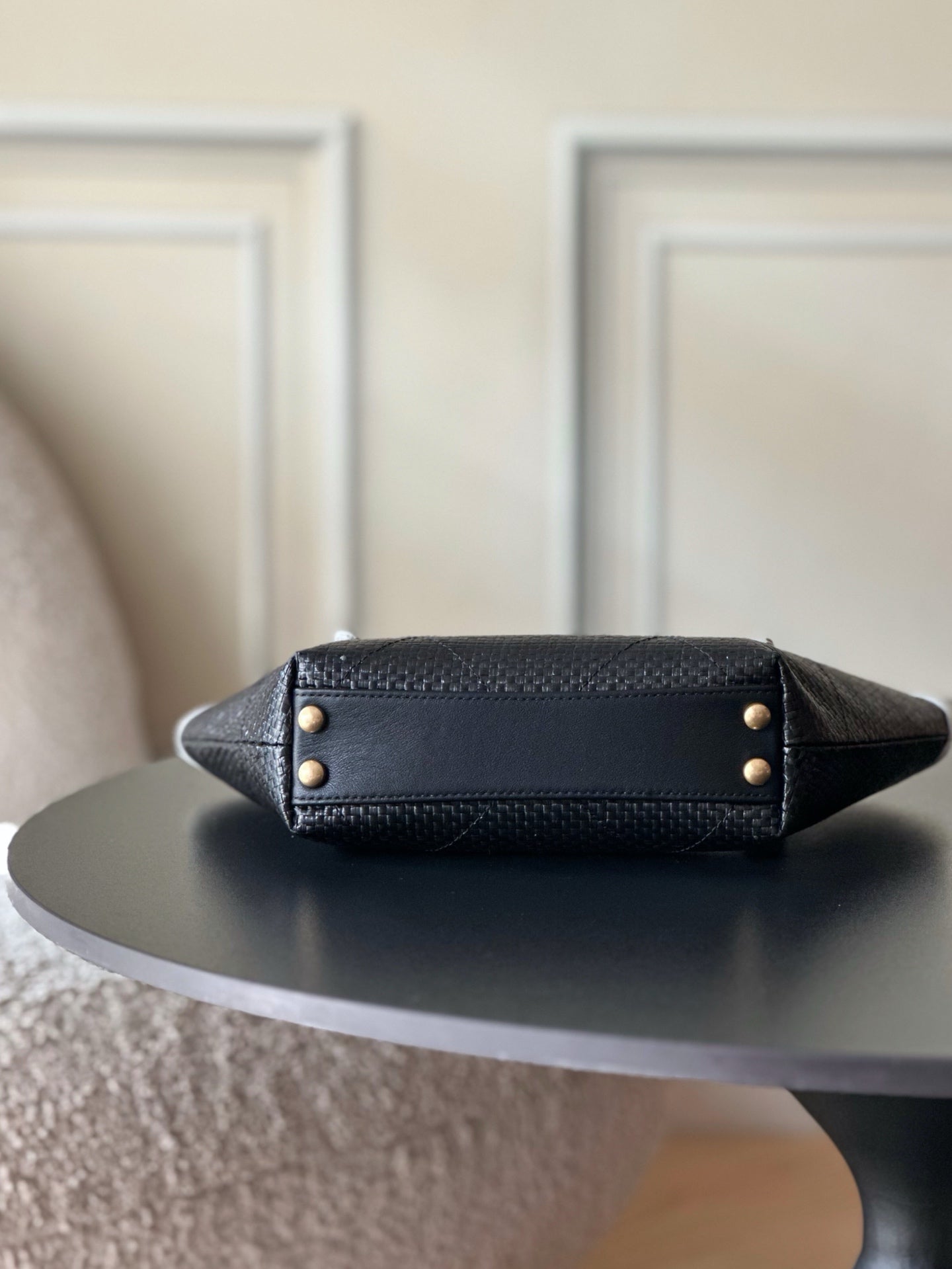 Chanel 2025 Maxi Hobo Bag 31cm Black mix White Straw Leather 320857