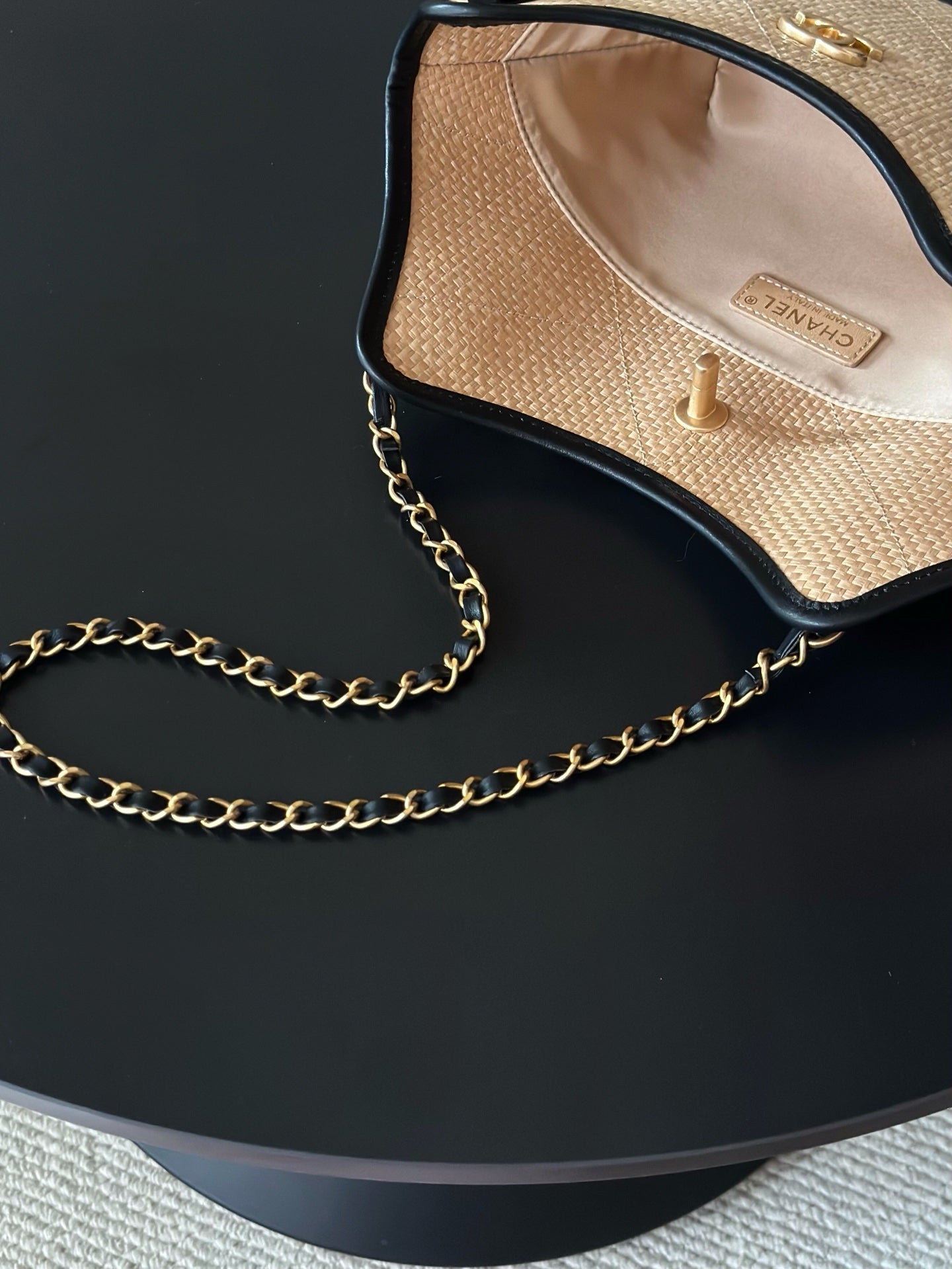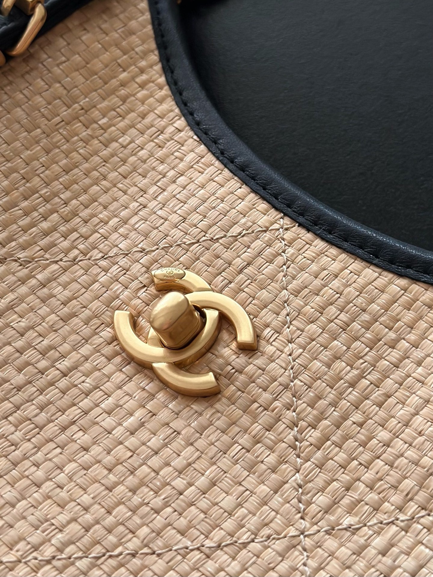 Chanel 2025 Maxi Hobo Bag 31cm Dark Beige mix Black Straw Leather 320858