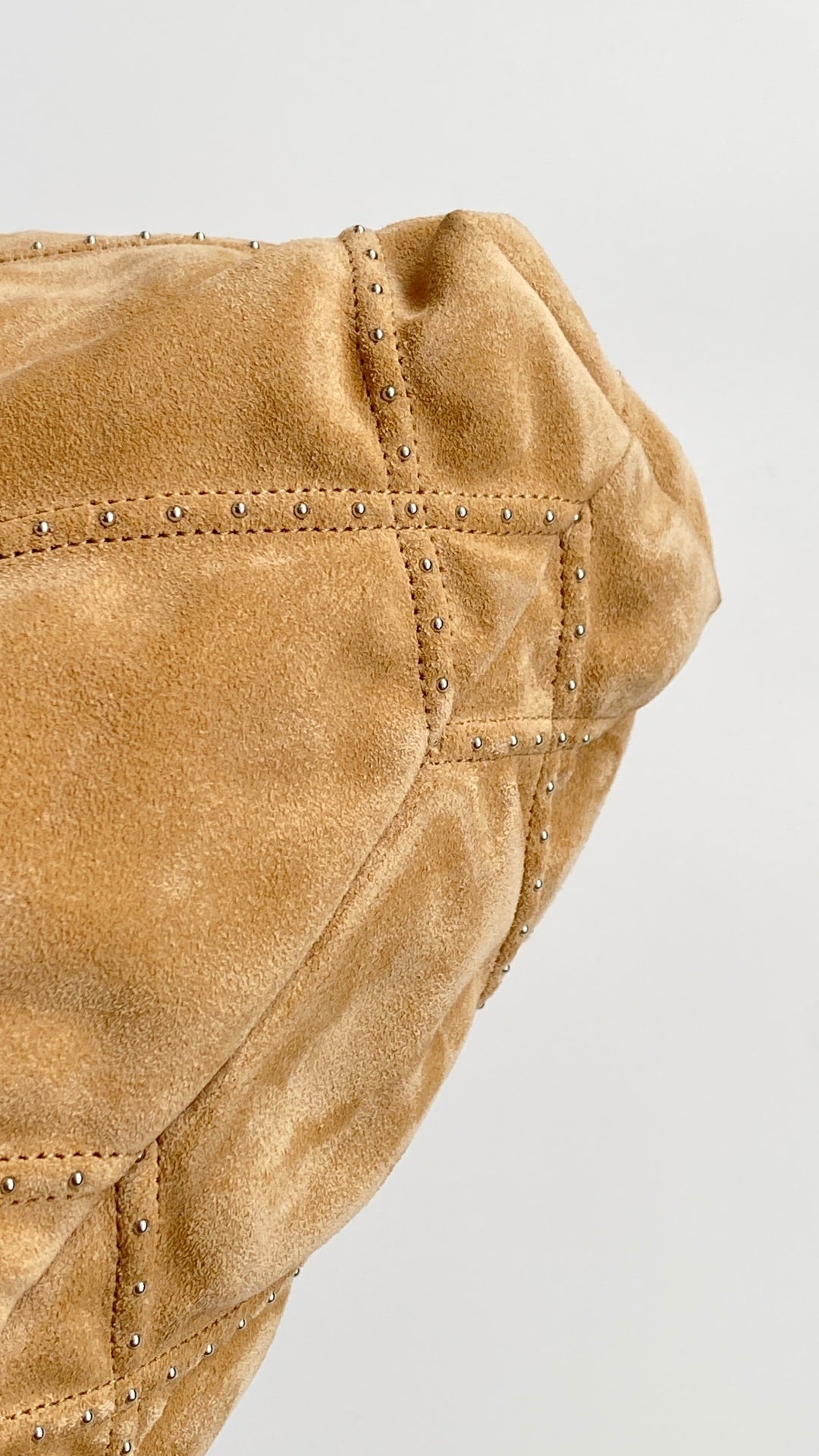 Chanel 25 Quilted Studded Bag Beige Suede