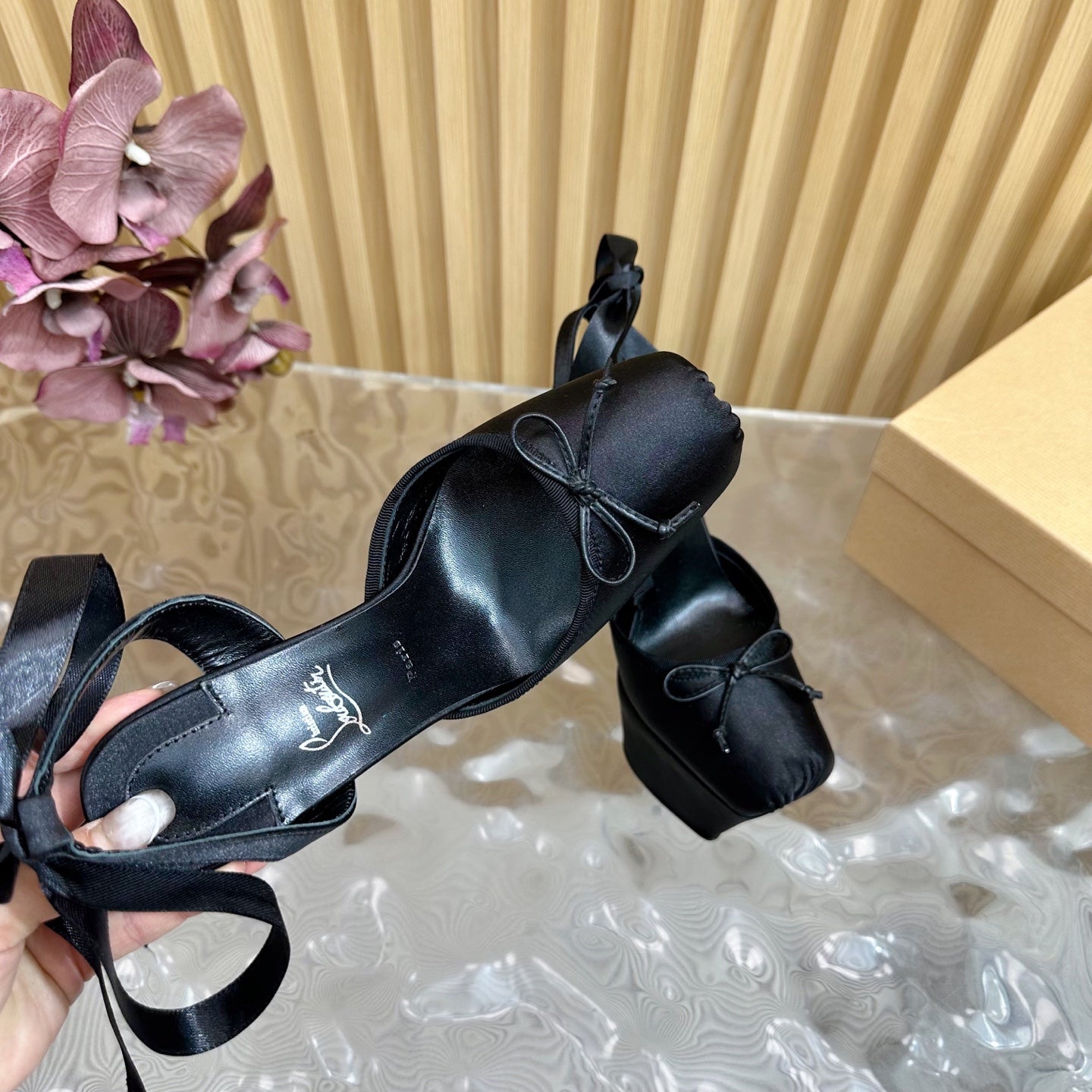 CL 25C Cassia Lace Up Alta 160mm Black Silk 221616