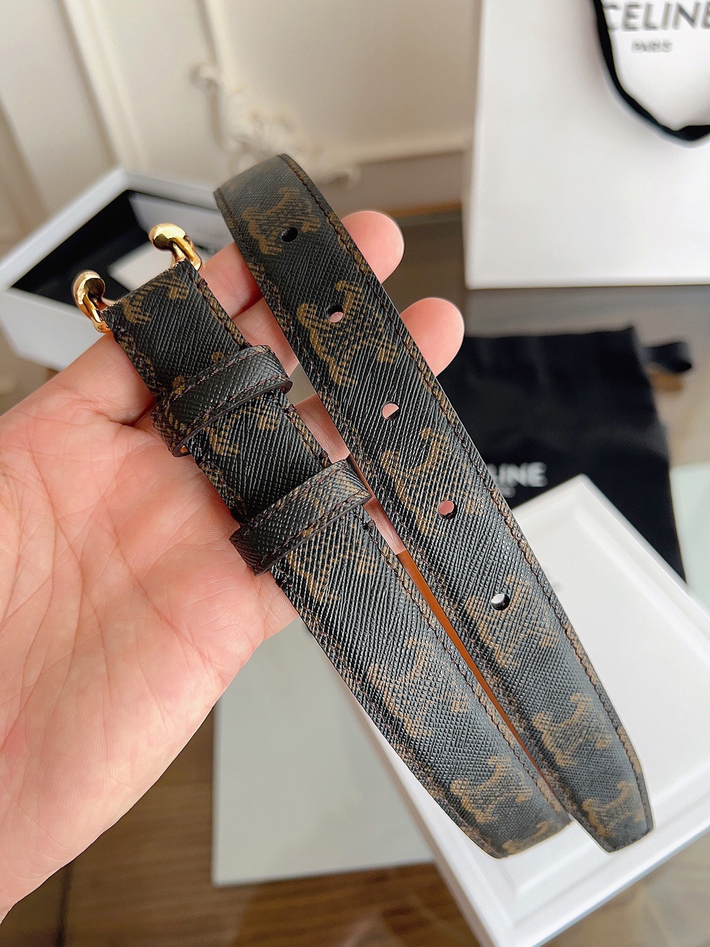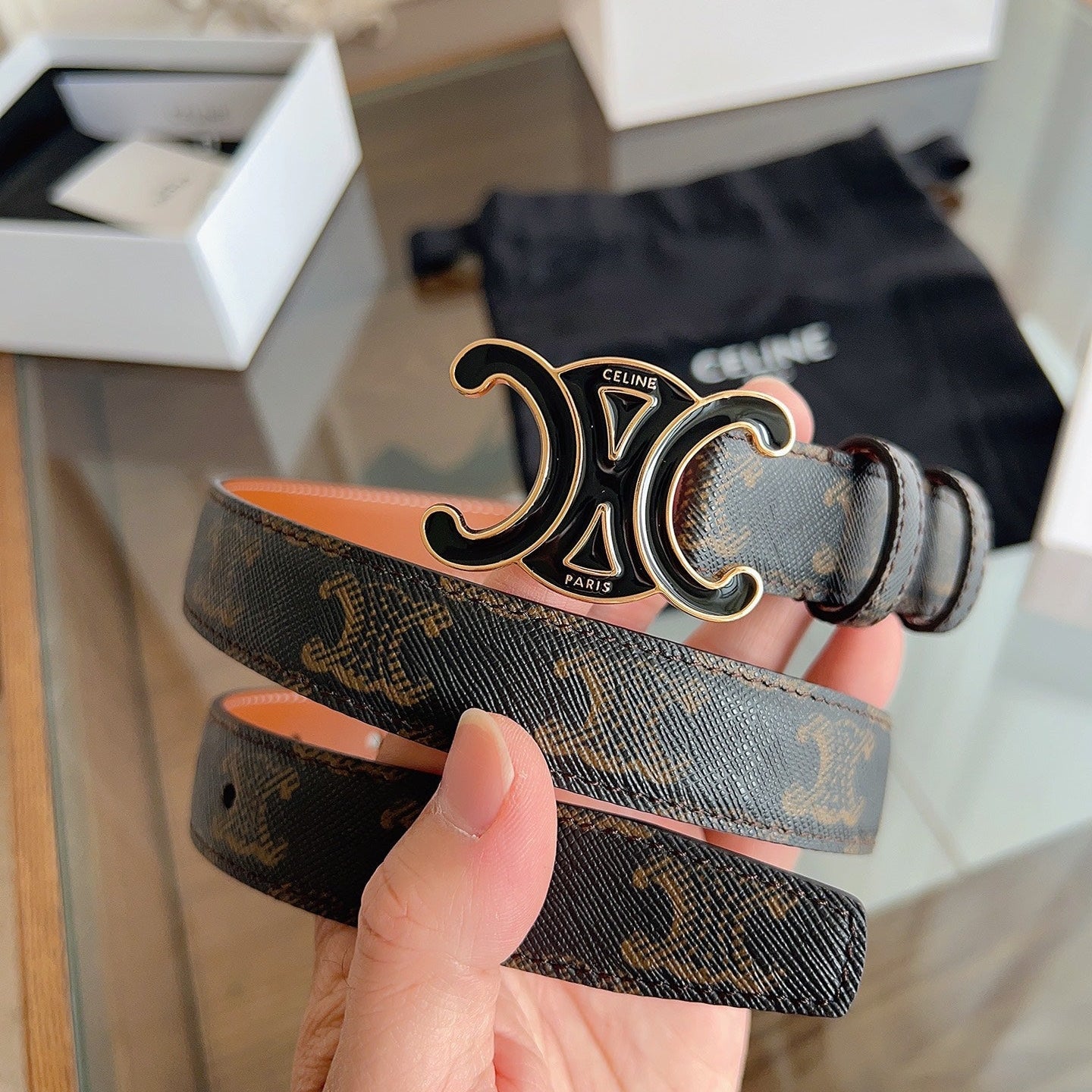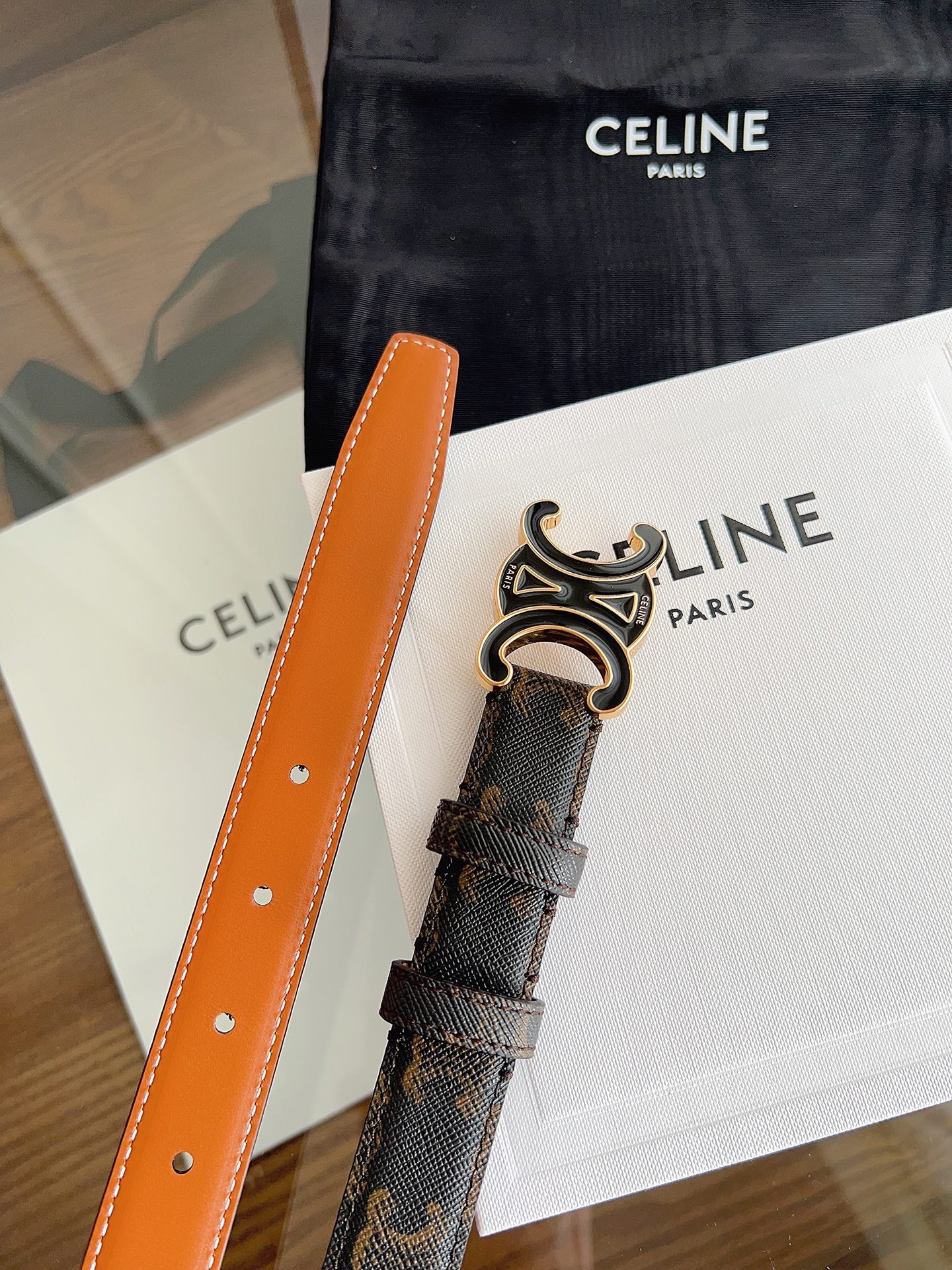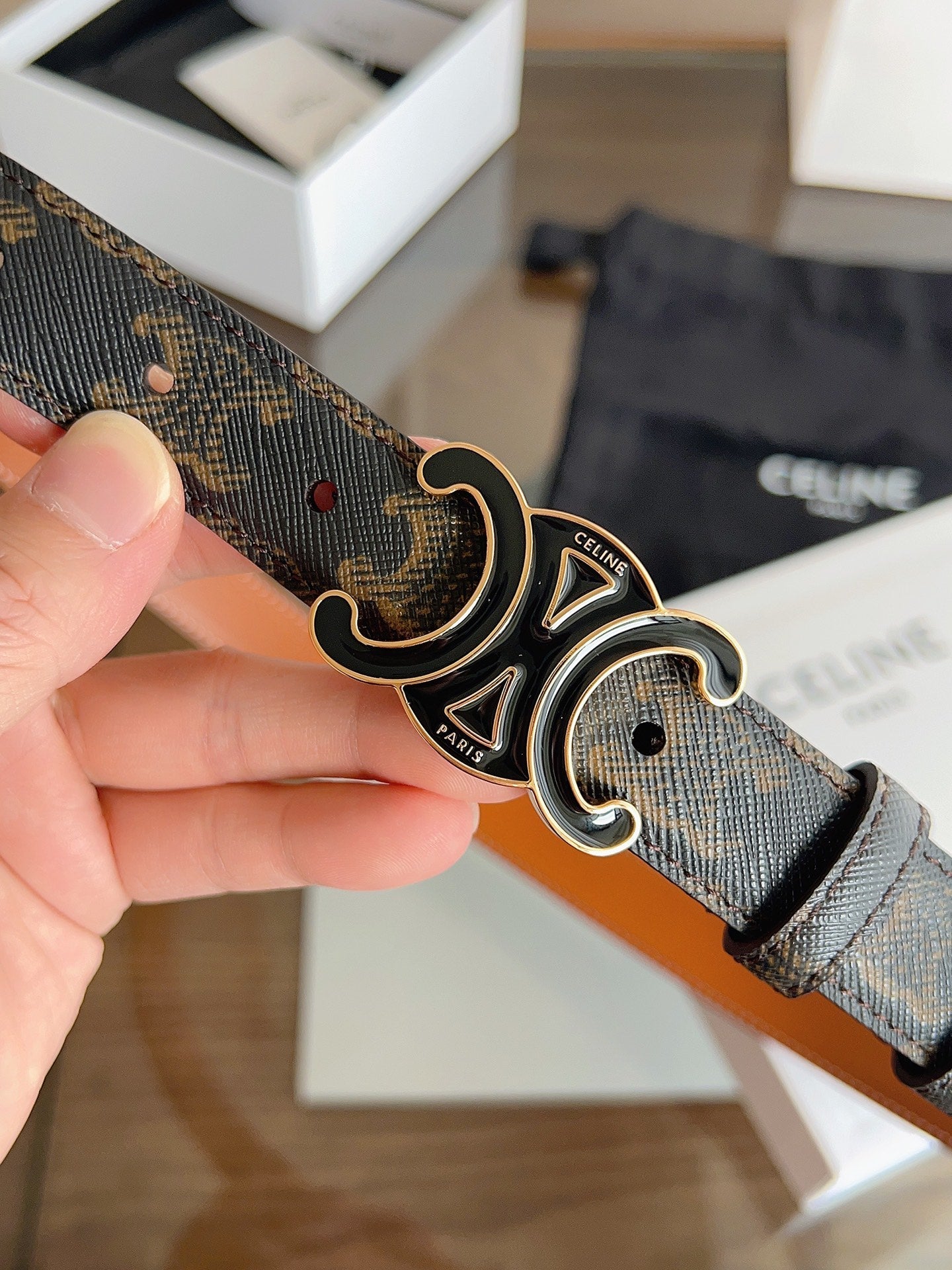 CL Black 25mm Triomphe Enamel Saddle Dark Brown Monogram Cowhide 615275