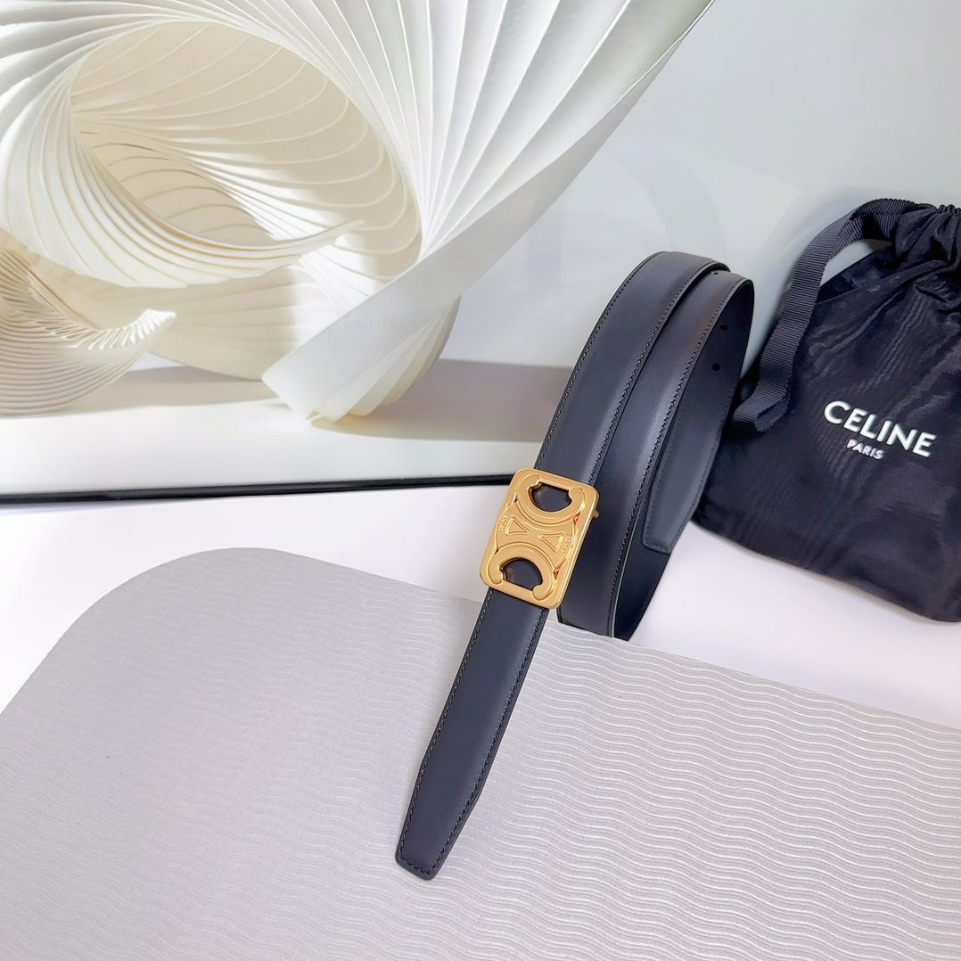 CL MEDIUM 25MM REVERSIBLE FRAMED TRIOMPHE BELT BLACK CALFSKIN GOLD HARDWARE
