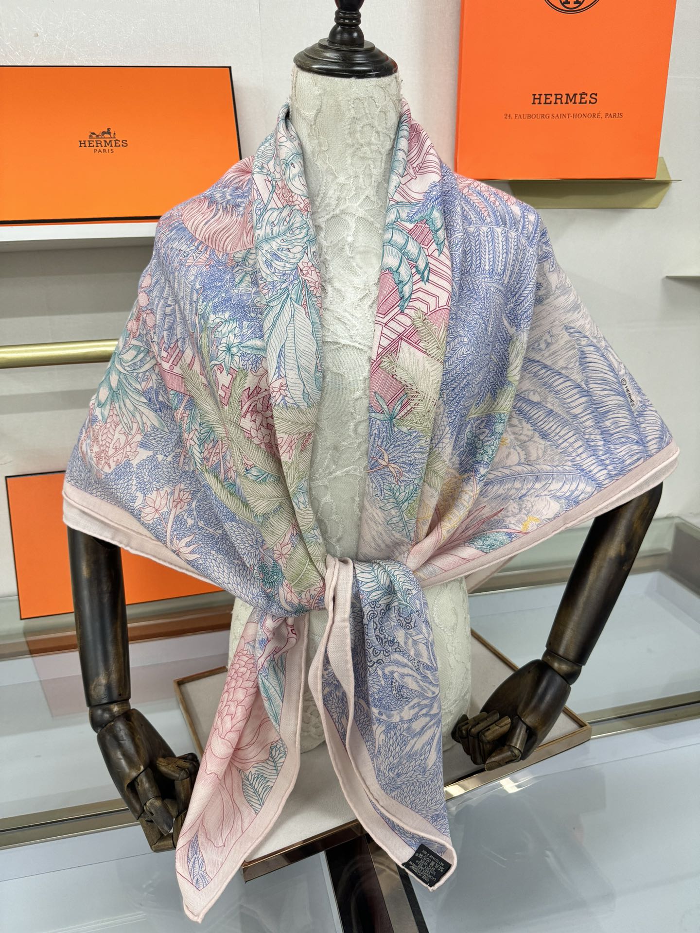 FAUBOURG TROPICAL SHAWL 140 CM IN COLORFUL CASHMERE AND SILK 379769