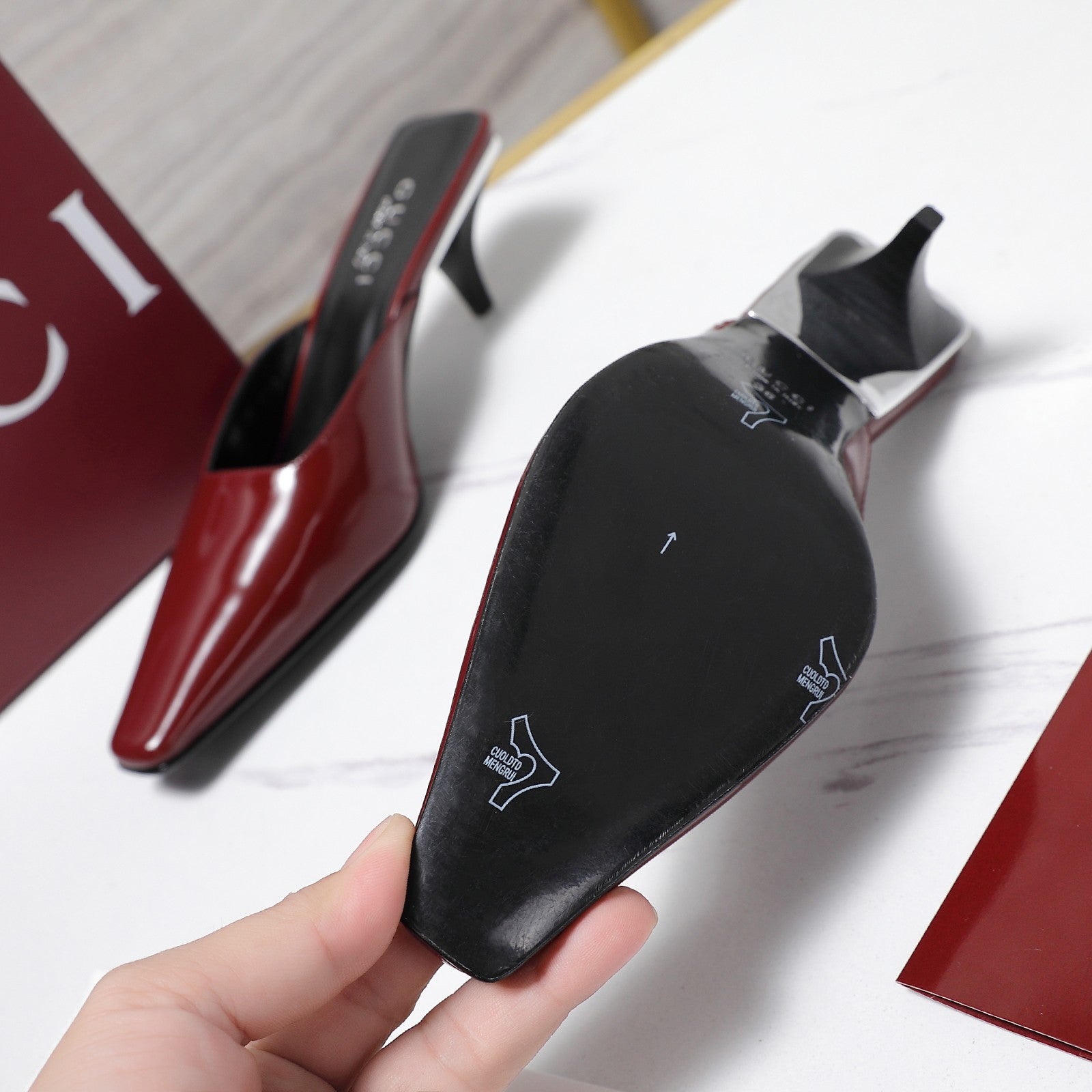 GG 26ss High Heel Mule 60 Dark Red Sheepskin 601086