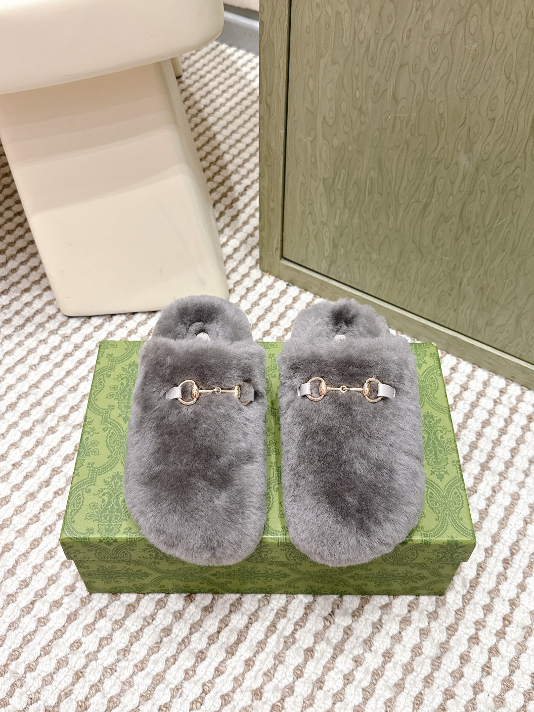 GG 26ss Loafers Rhinestones Gray Wool 612028