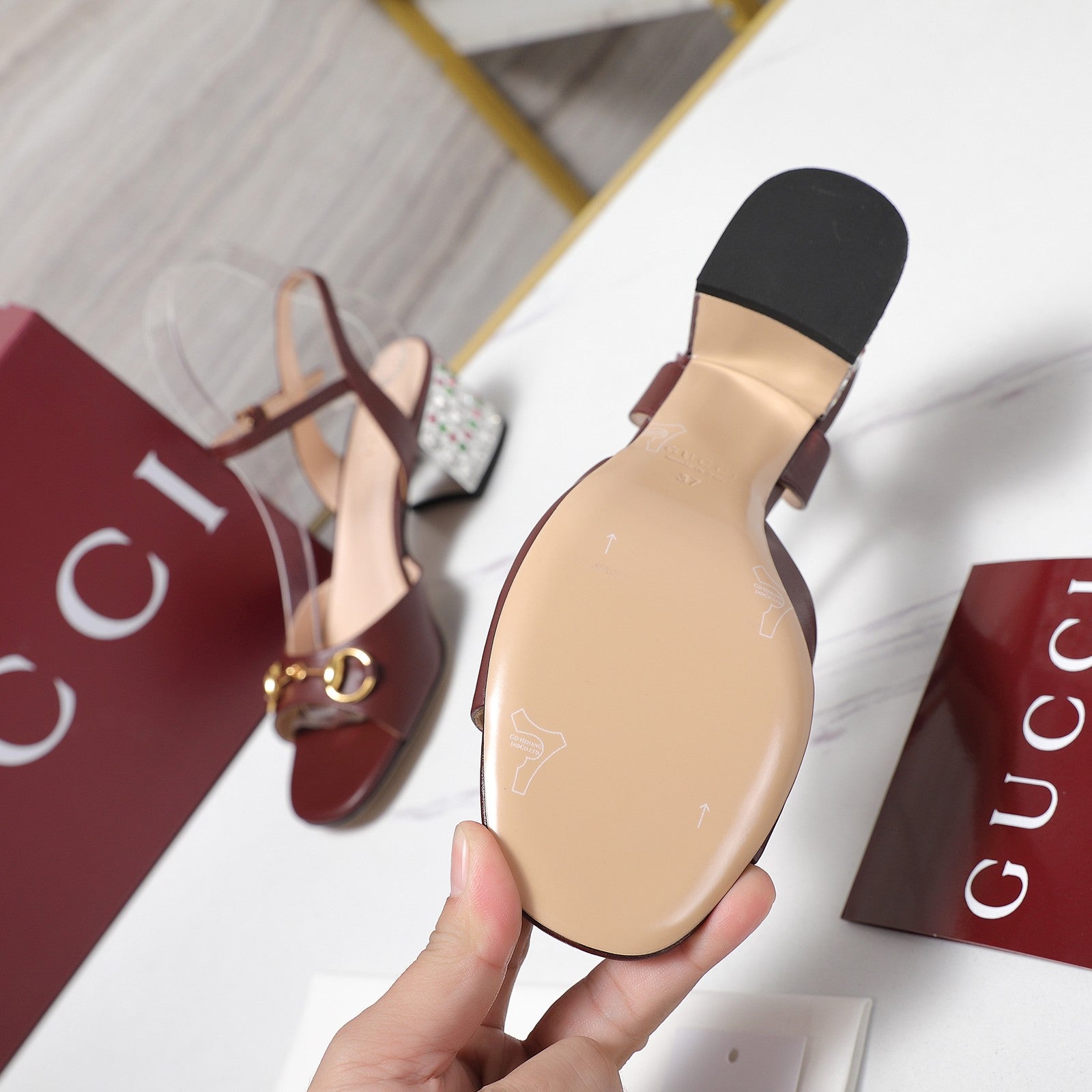 GG 26ss Sandals 55 Burgundy Beige Sheepskin 601097