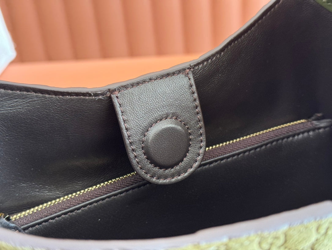 Gucci Body Double Lock Handbag Green Velvet Embossed Leather 244511