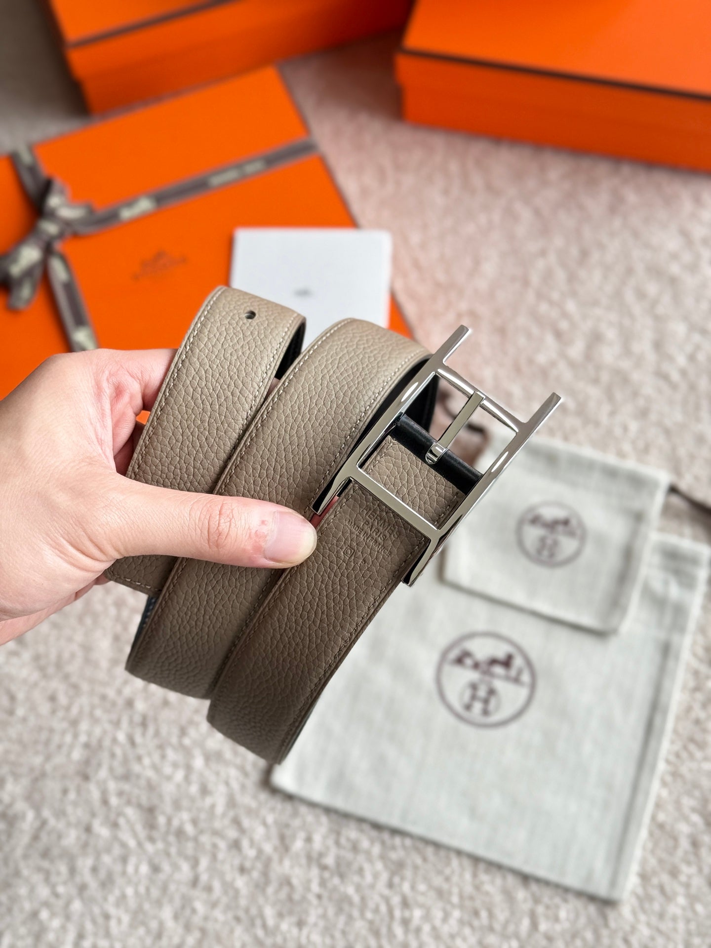 HM Silver Quentin Reversible 32mm Belt Black Beige Leather 188085