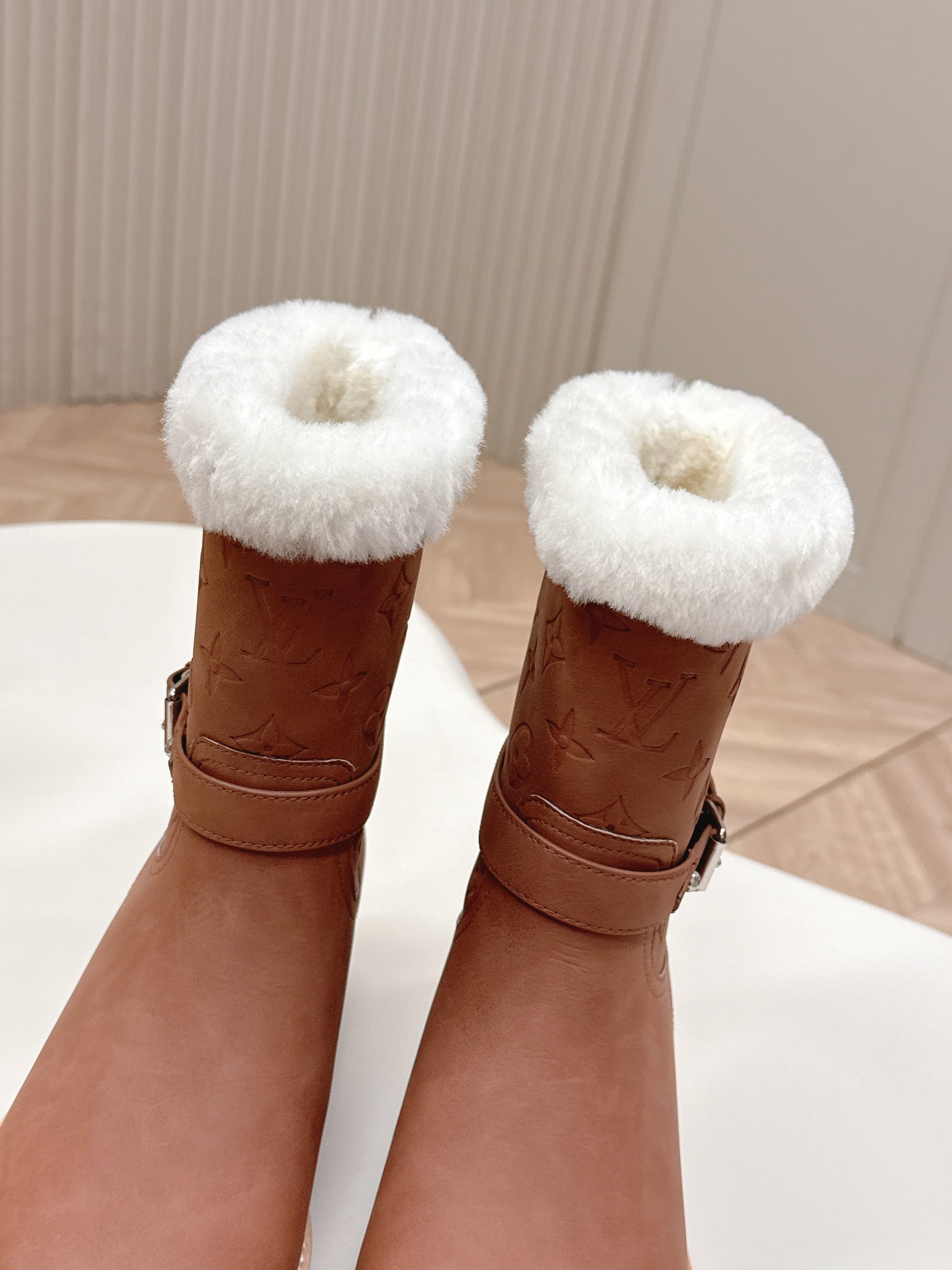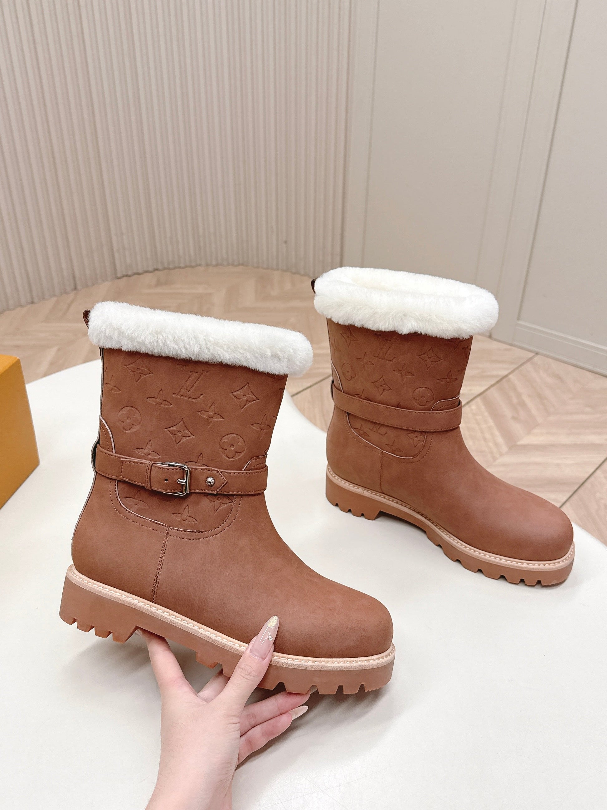 LV 2026 Territory Ankle Boot Brown White Nubuck Calf Leather 595442