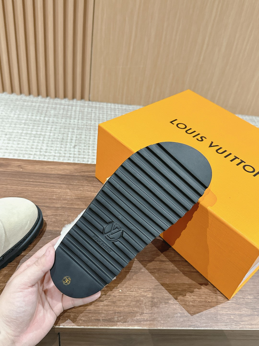 LV Cosy Flat Comfort Clog Beige Fur Lining Suede