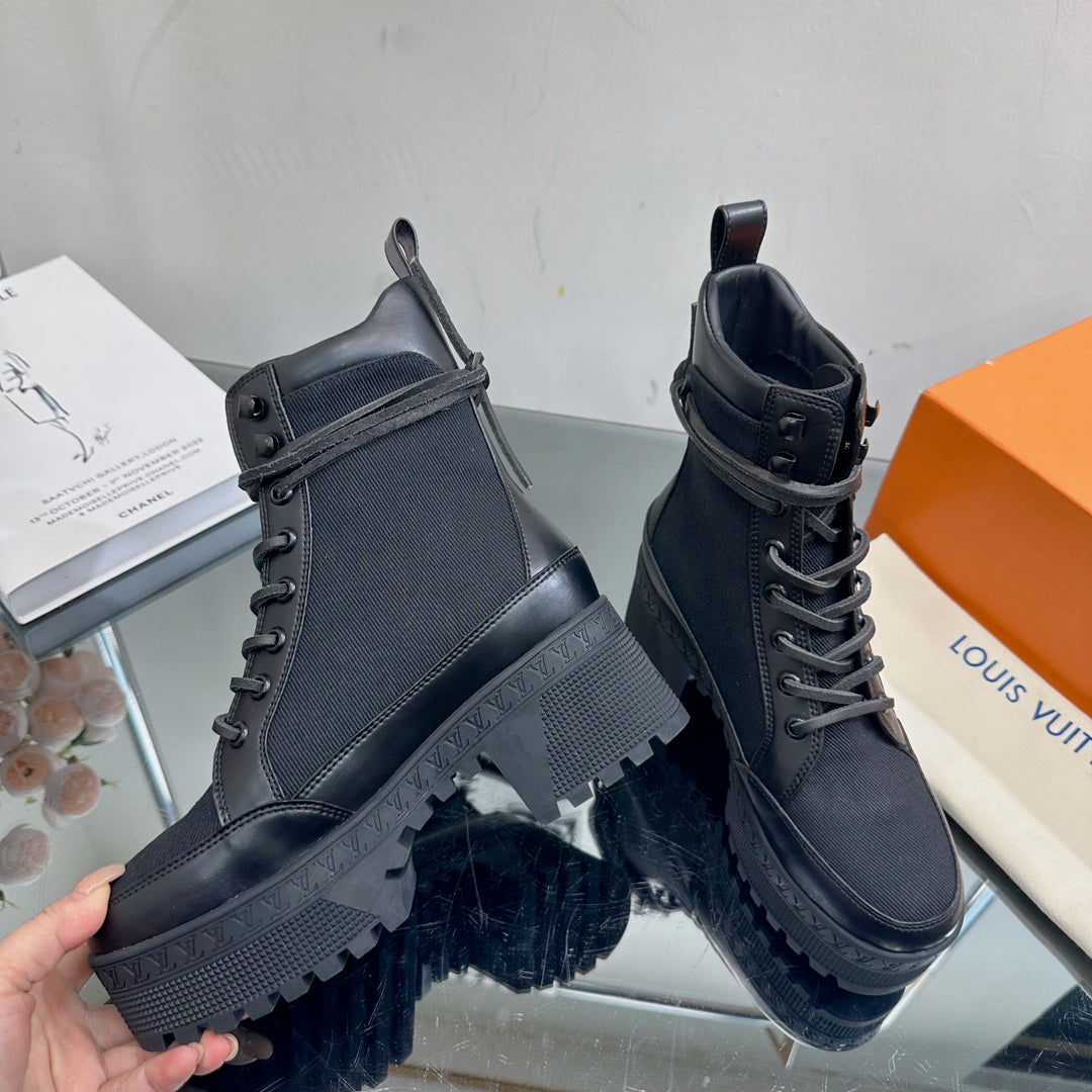 LV Laureate Platform Desert Boot 70mm Black Fabric Mix Cowhide