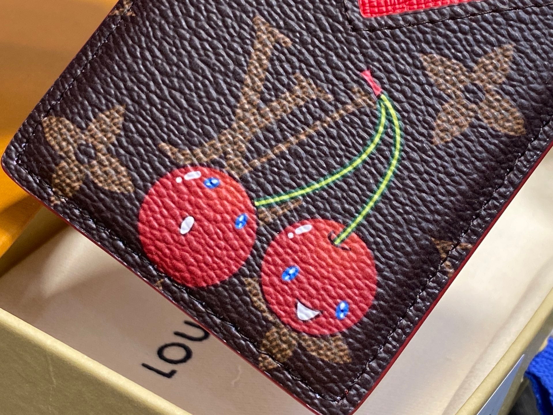 LV x TM Porte-Cartes Magnet Brown Red Monogram Canvas