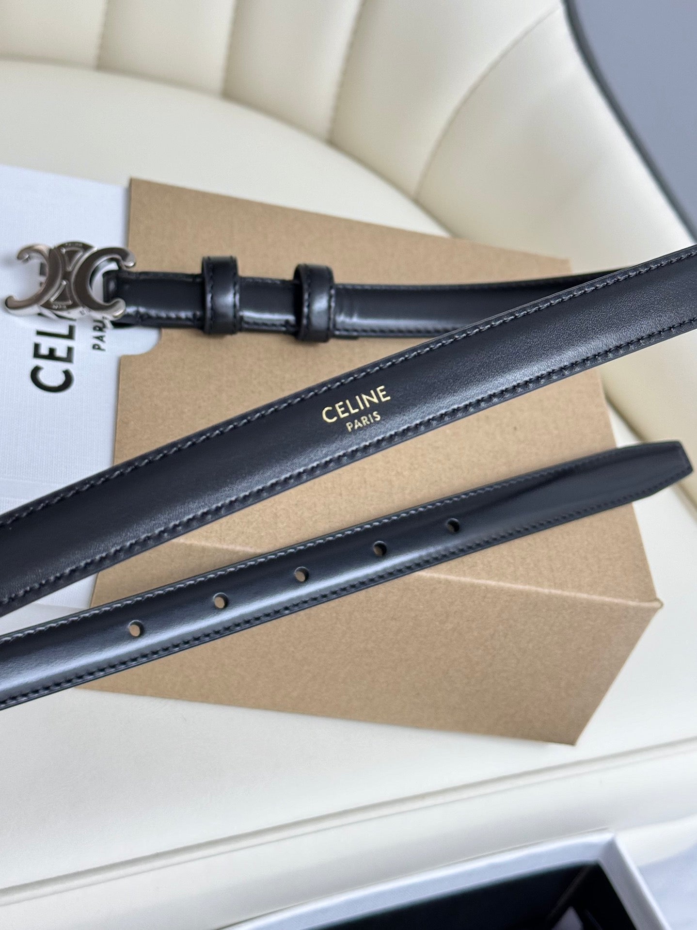 MINI TRIOMPHE BELT 13 MM BLACK LEATHER SILVER HARDWARE