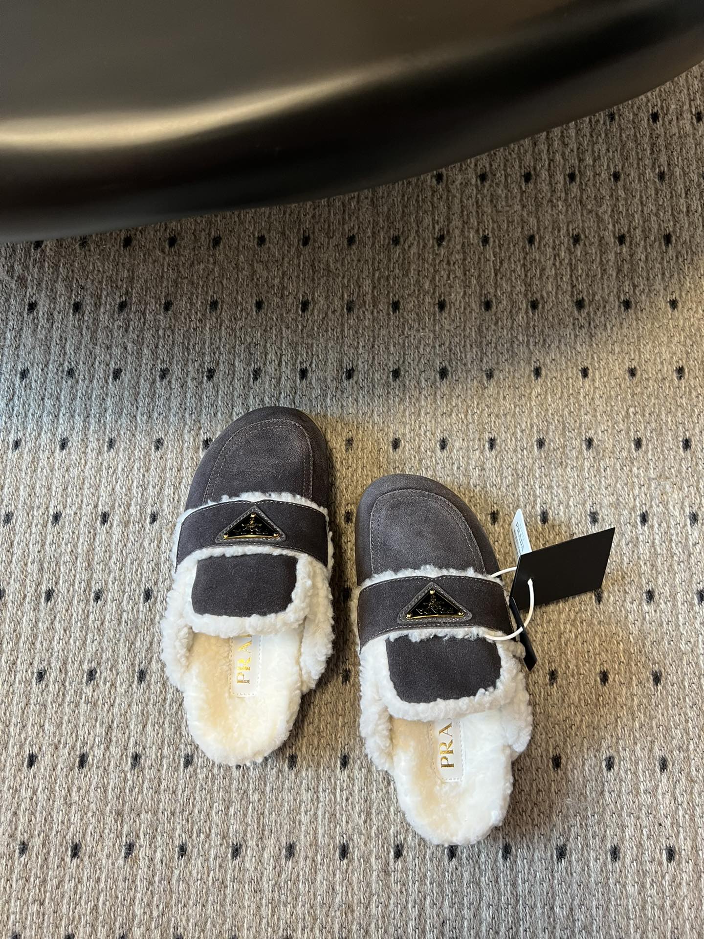 PRA Furry Half-Slipper Dark Gray Suede 478564