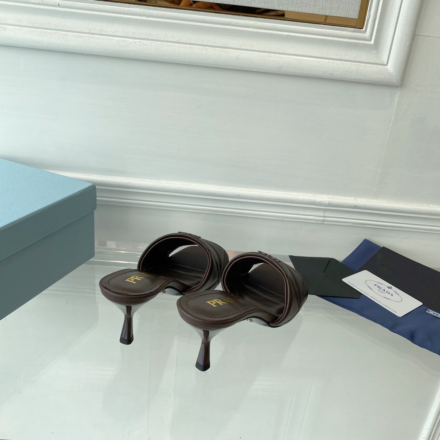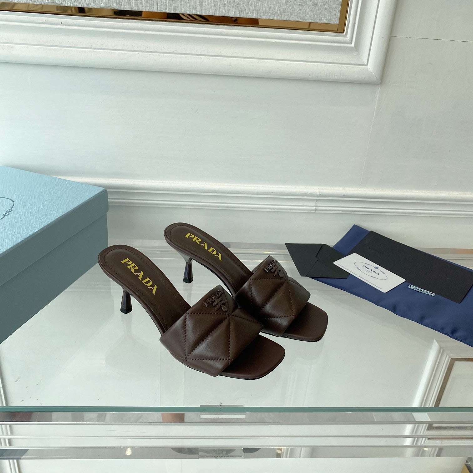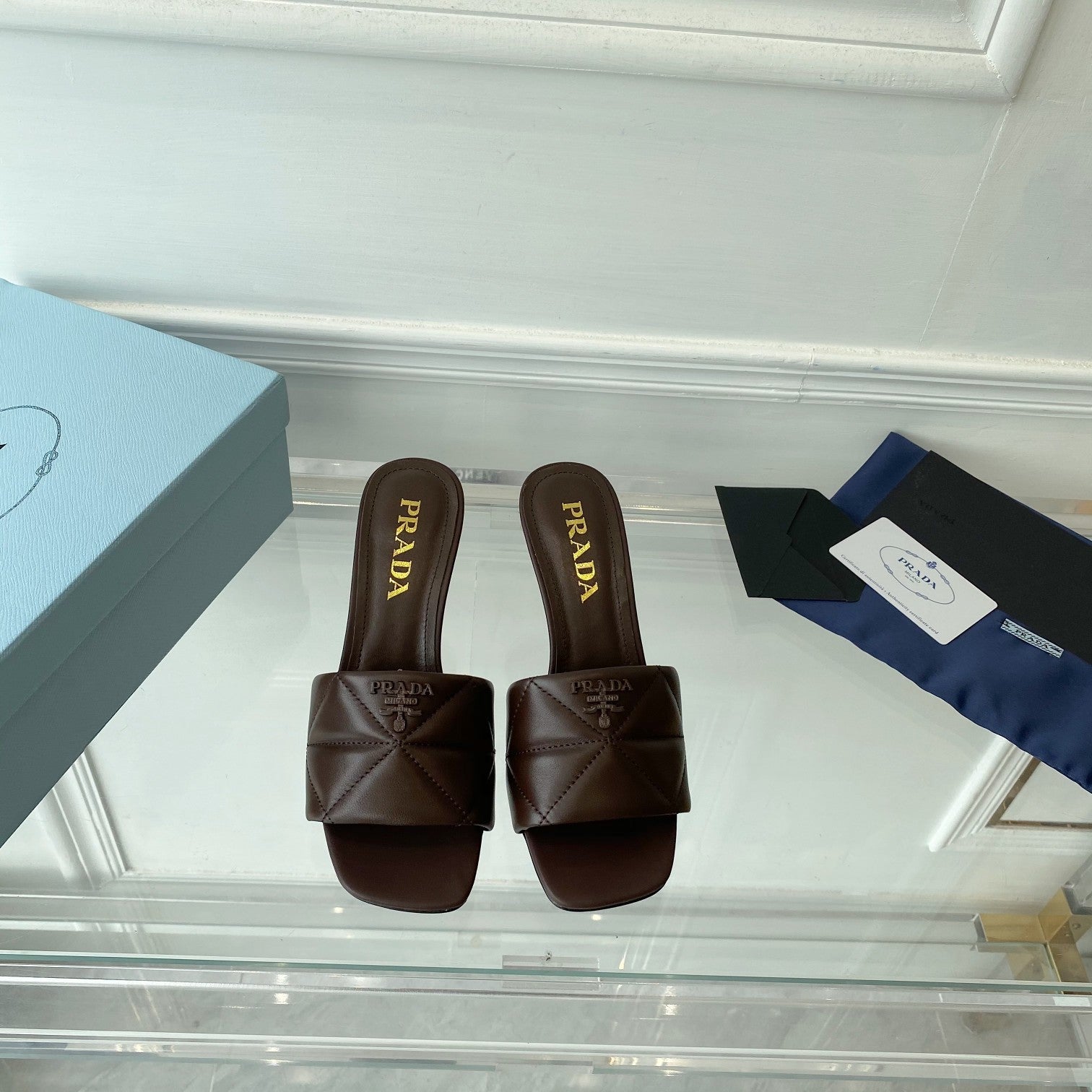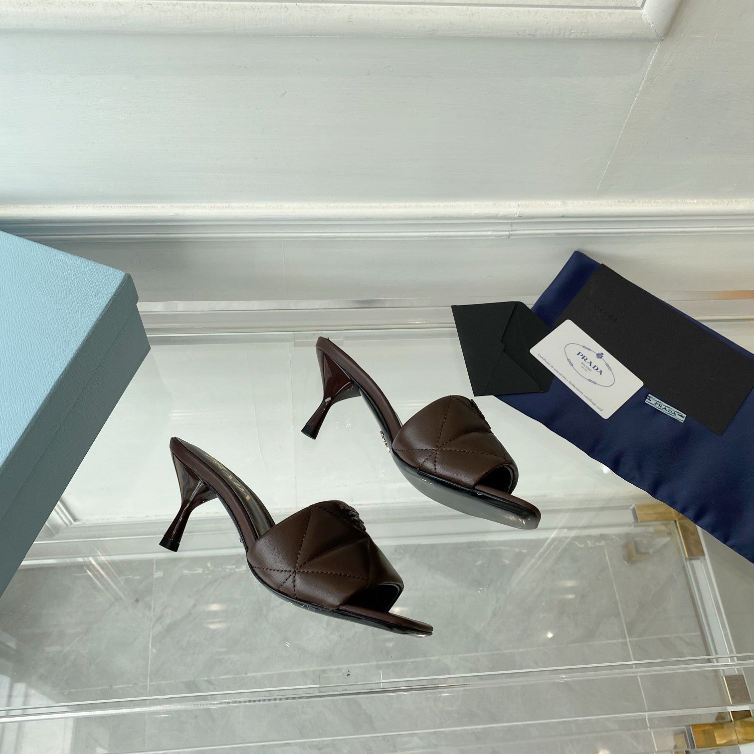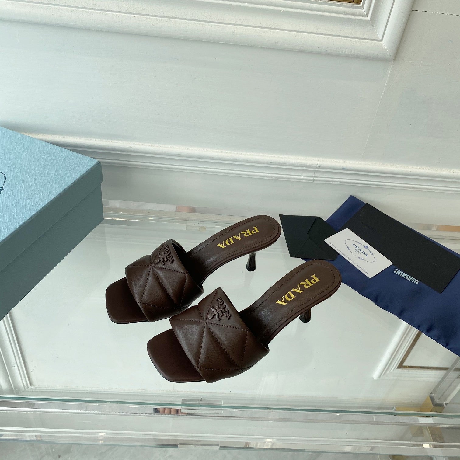 PRA QUILTED HIGH HEELS SANDALS 65 CHOCOLATE LAMBSKIN