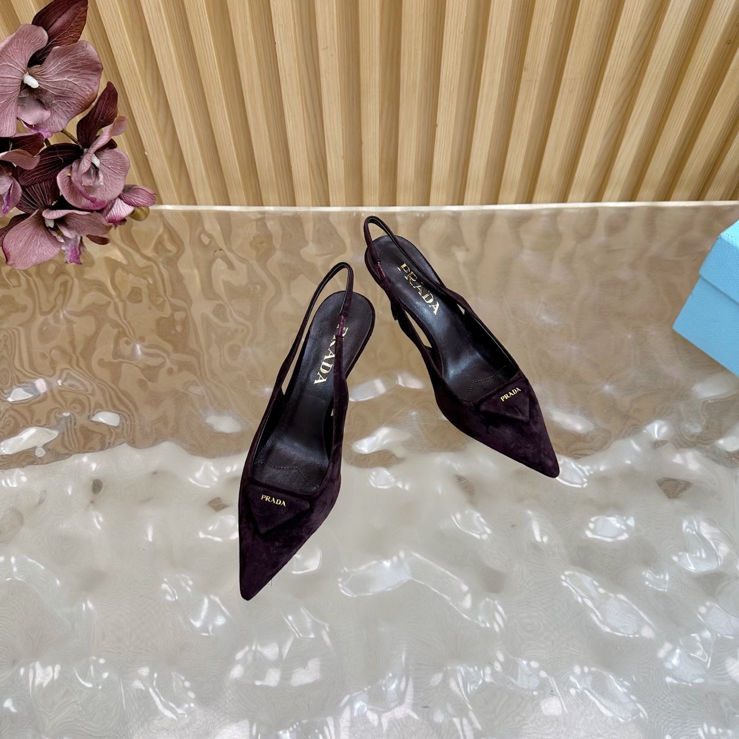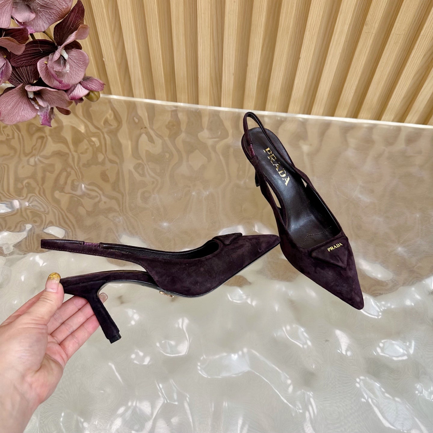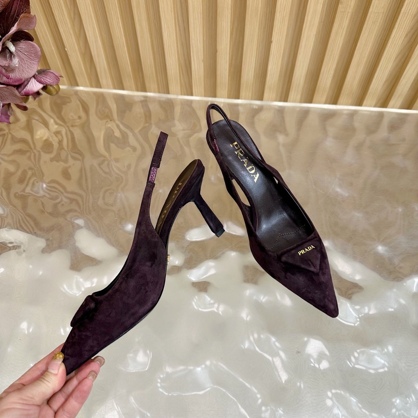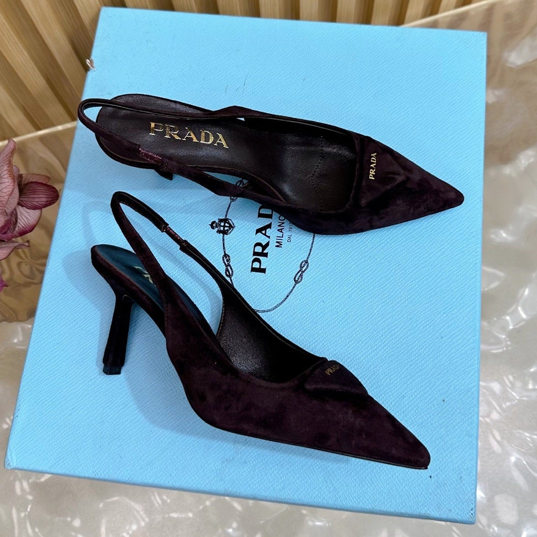 Prada 2025 Slingback Deep Burgundy Suede Sheepskin