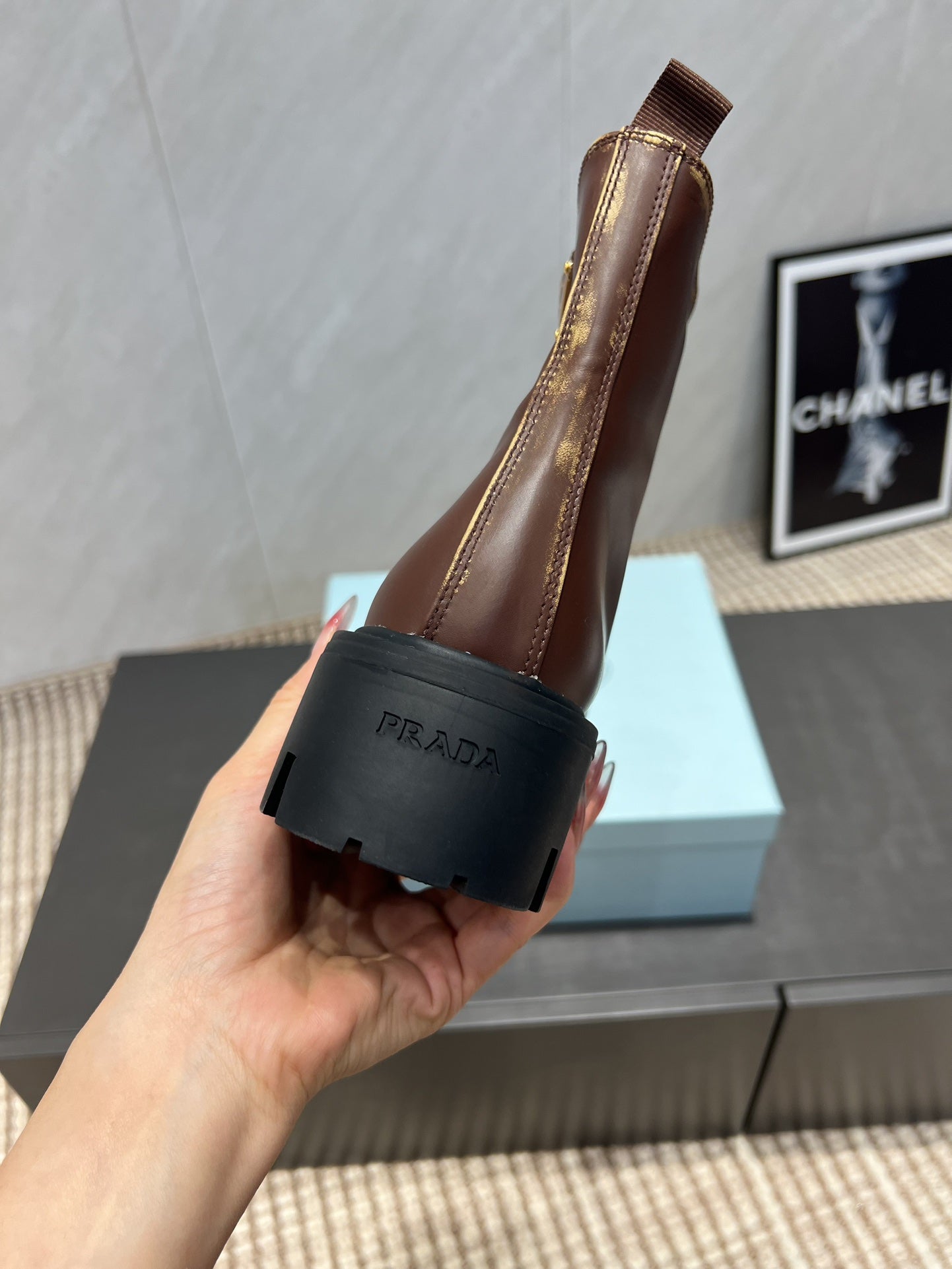 Prada 25 Martin Boots Brown Black Cowhide 501672