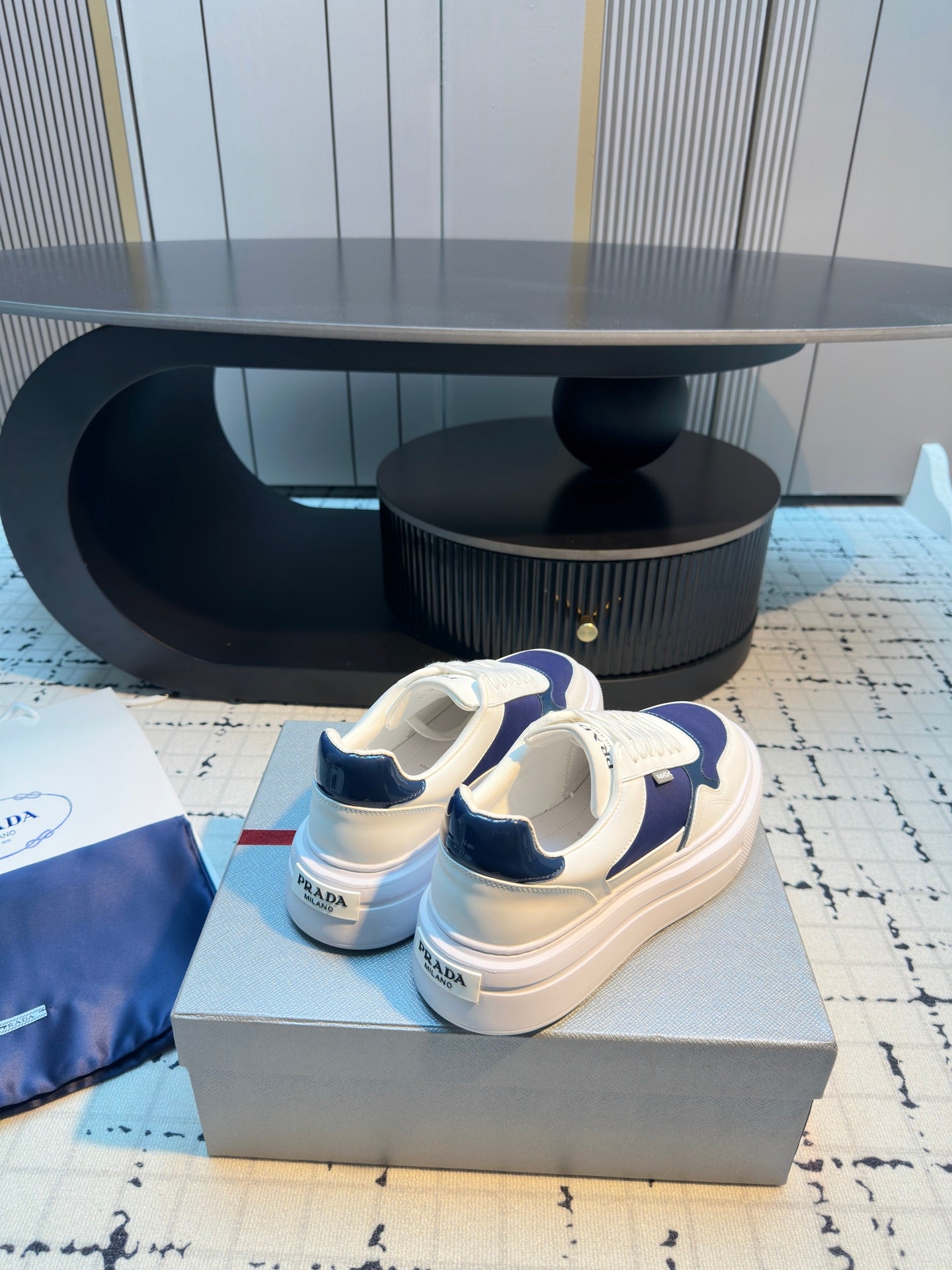 Prada 25s Platform Sneakers White Blue Cowhide 538420