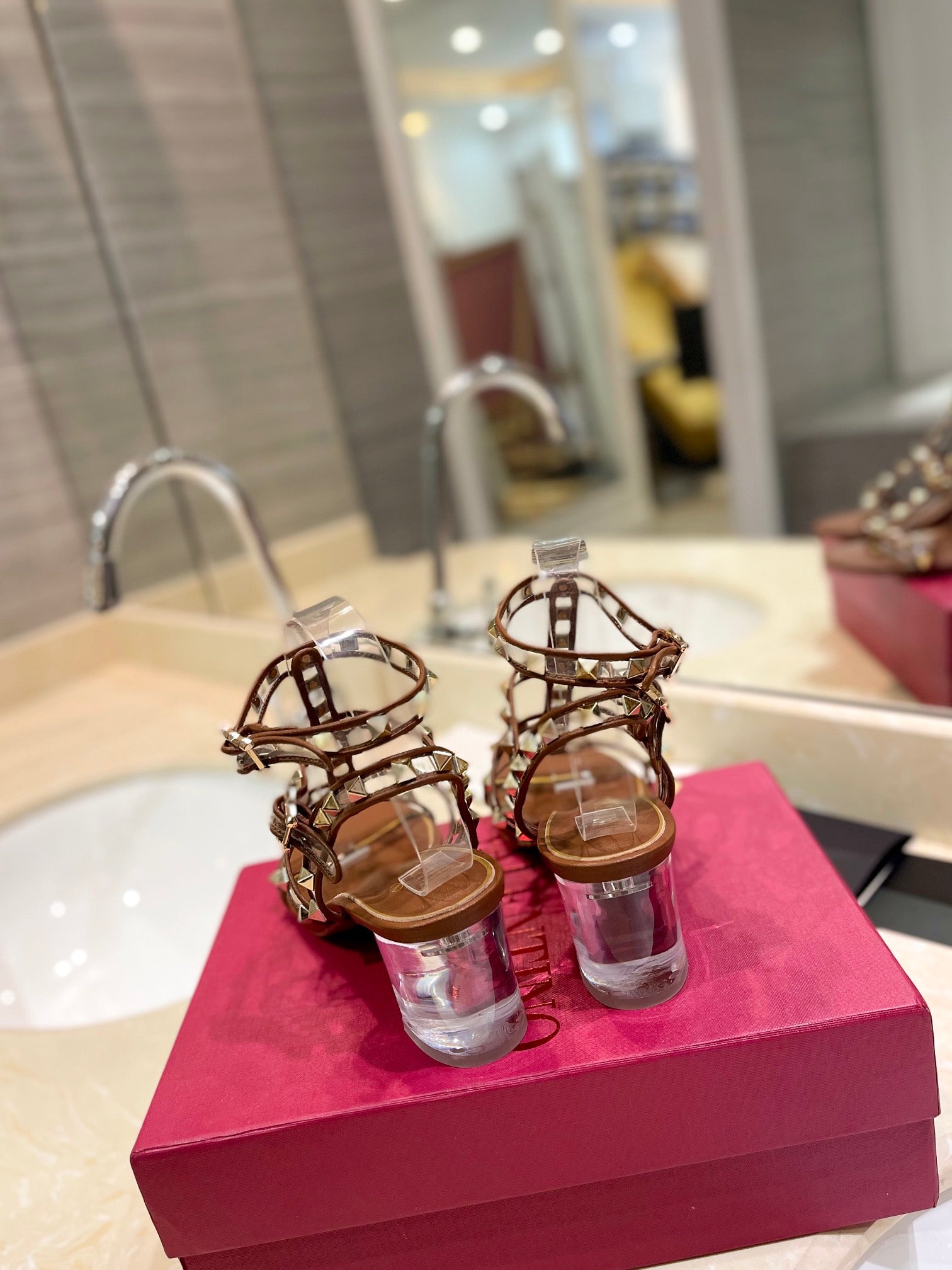 ROCKSTUD SANDAL WITH STRAP IN BRONZE BROWN CALFSKIN 60 MM