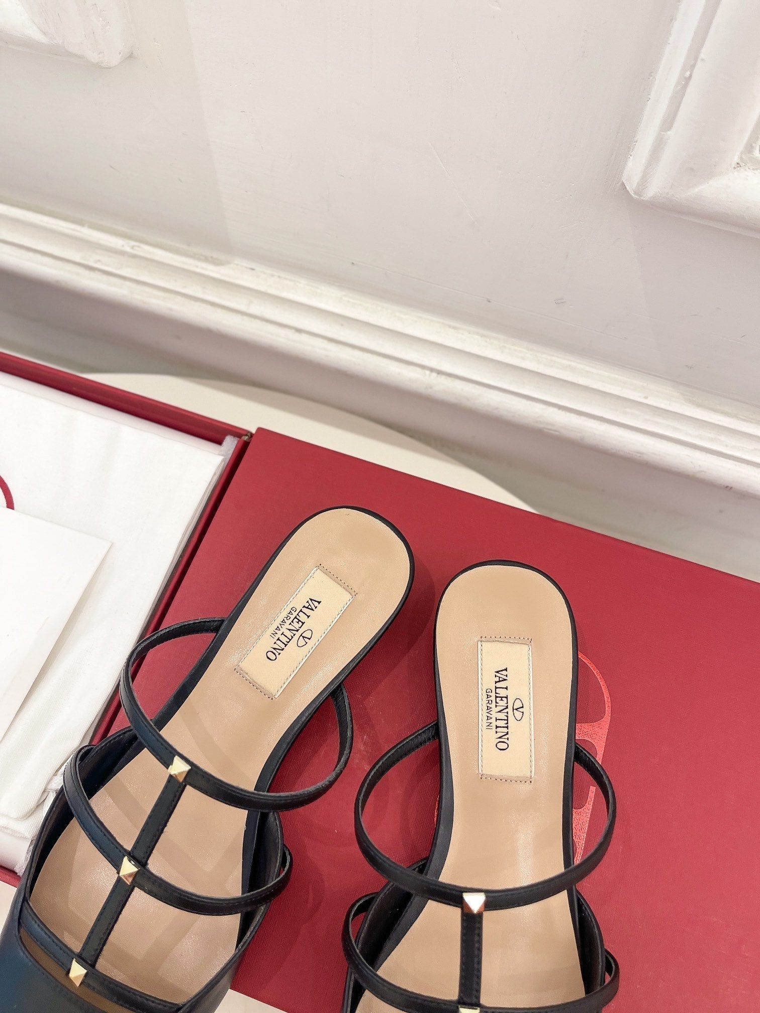 Rockstud Wispy Black Calfskin Mule 20mm