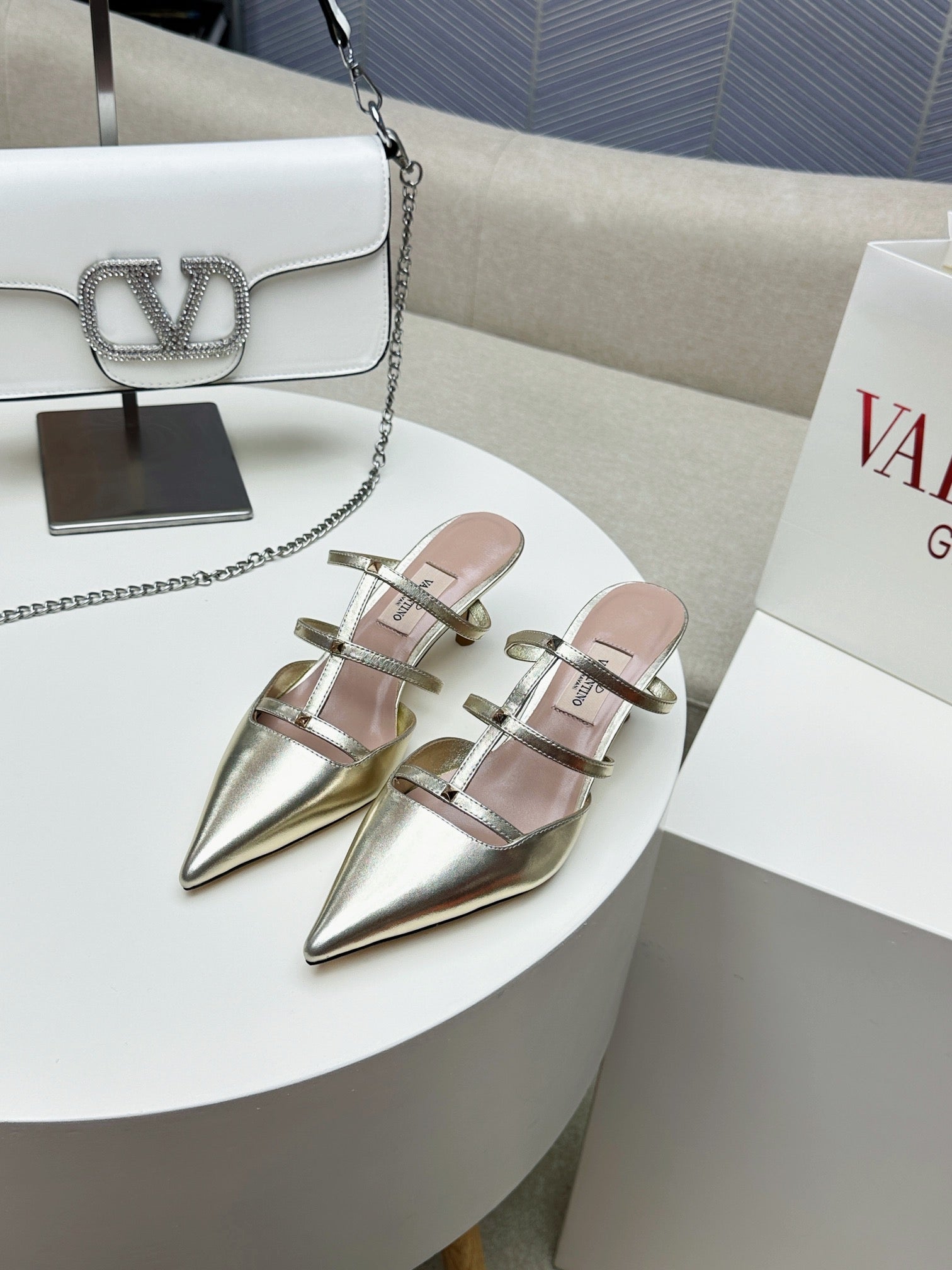 ROCKSTUD WISPY GOLD CALFSKIN MULE 60MM