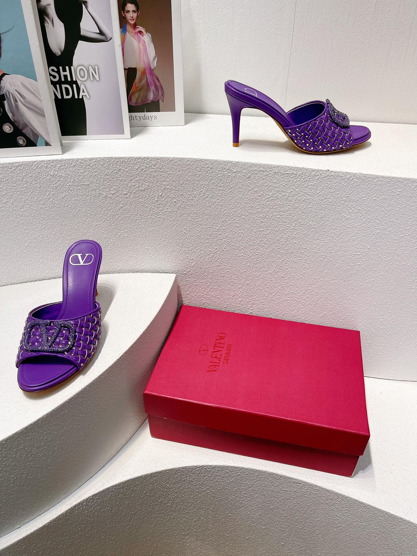 VT High Heeled Sandals Purple Sheepskin 292792