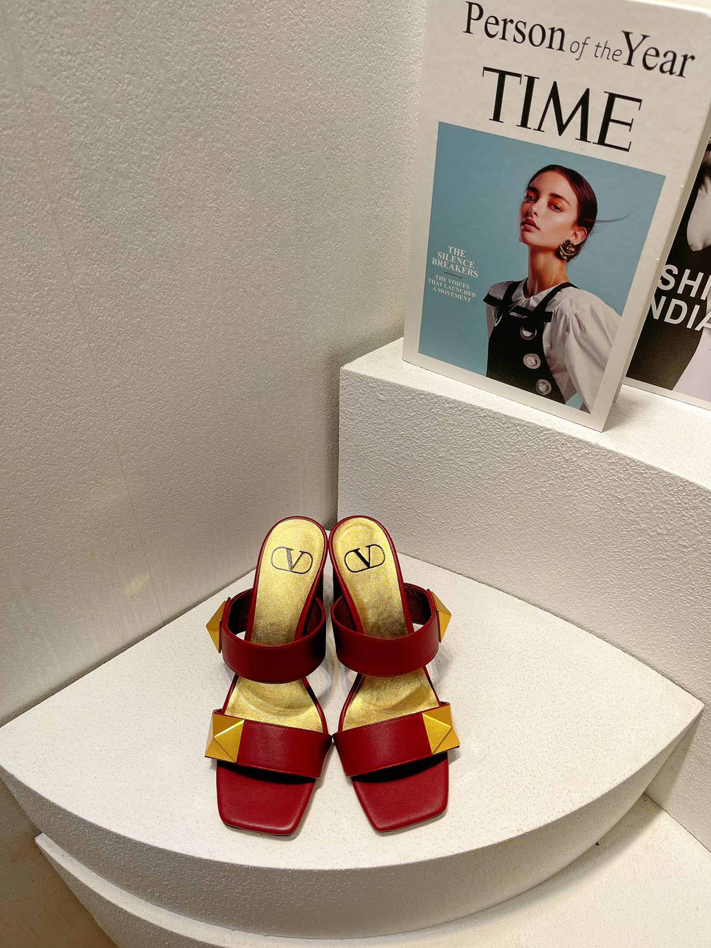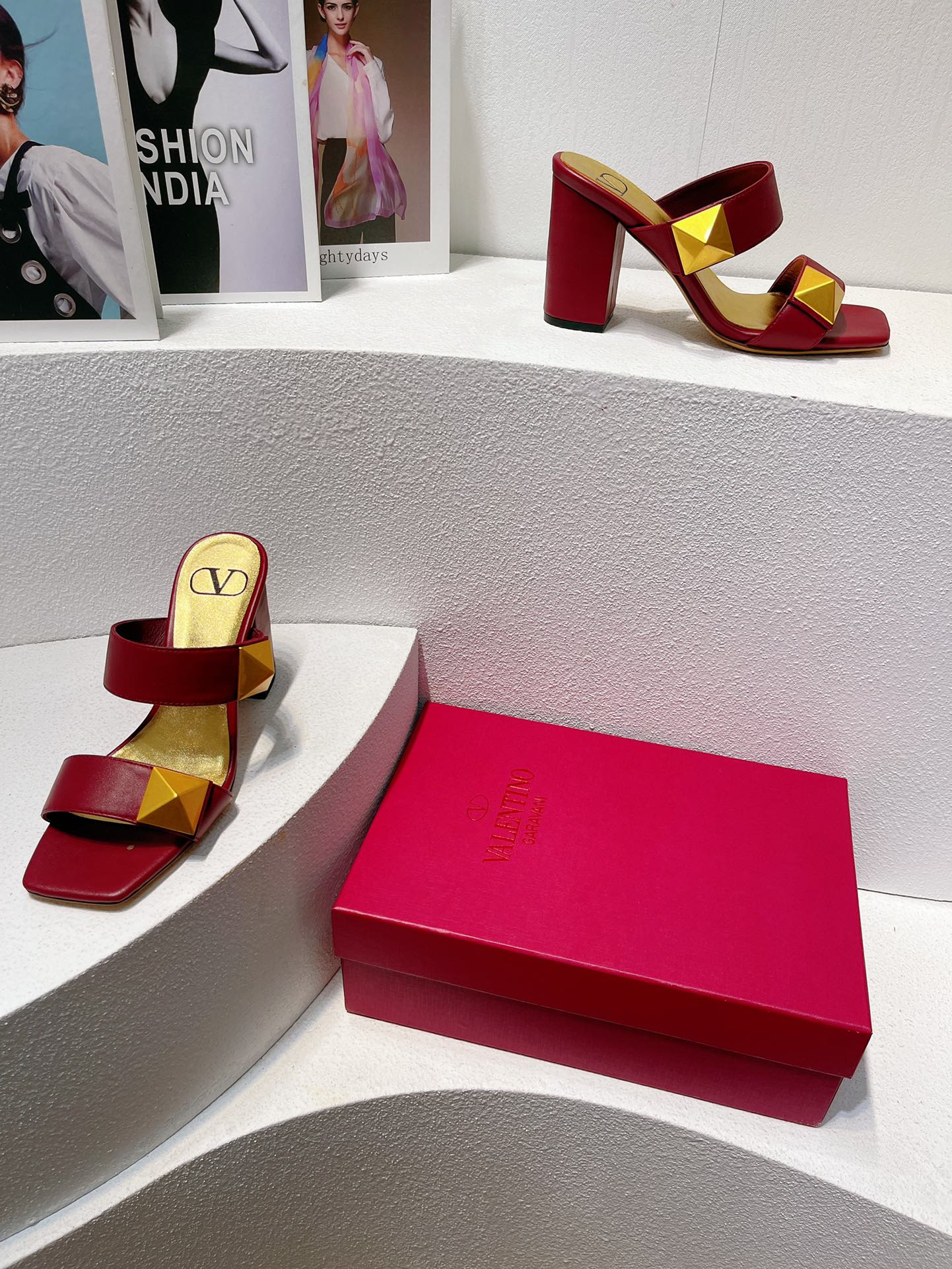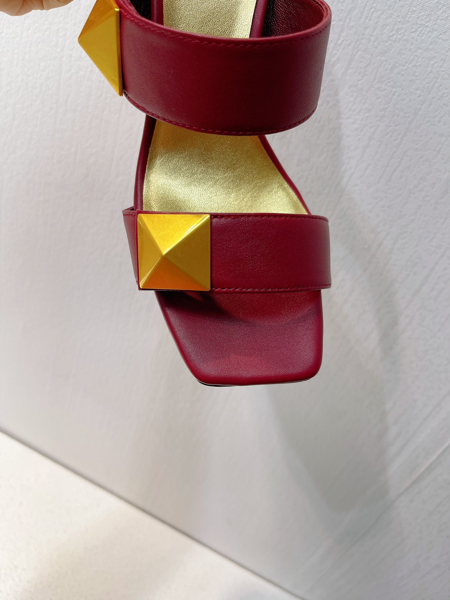 VT One Stud Leather Sandals Ruby Red Cowhide 292752