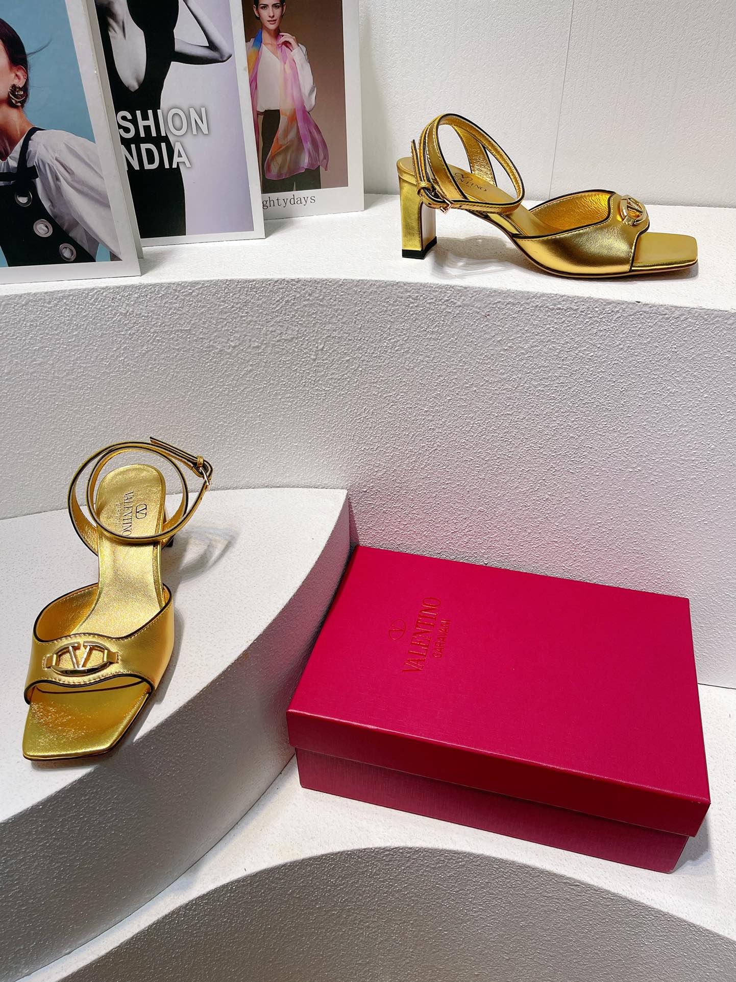 VT Sandals Heels 50mm Gold Cowhide 292774
