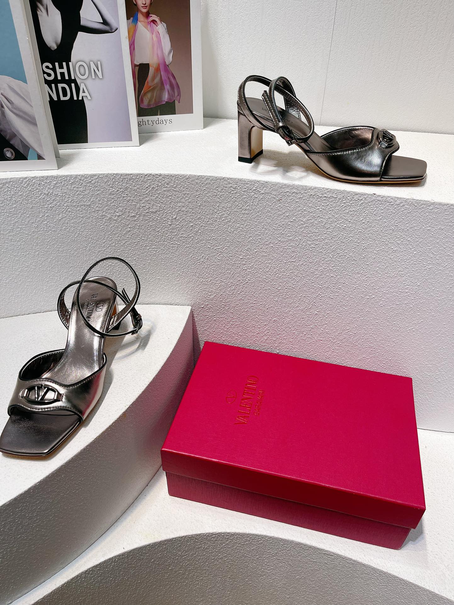 VT Sandals Heels 50mm Gray Cowhide 292776
